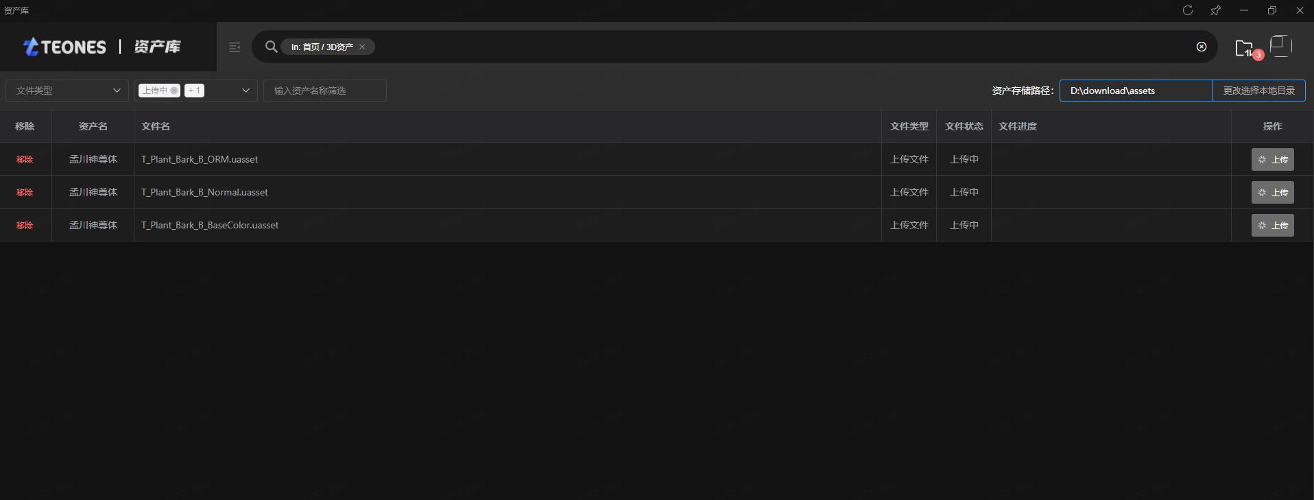 导入资产后,资产附件会在后台执行上传,在资产搜索框右侧的文件上传图标上会显示进行中的数量