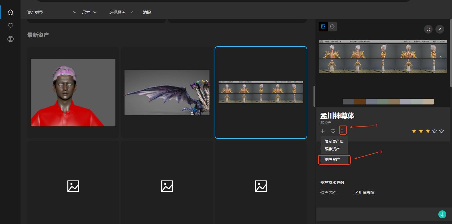 图标,在弹出的下拉框中选择删除资产,即可将资产删除