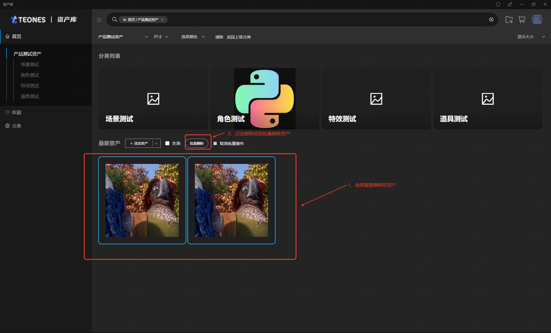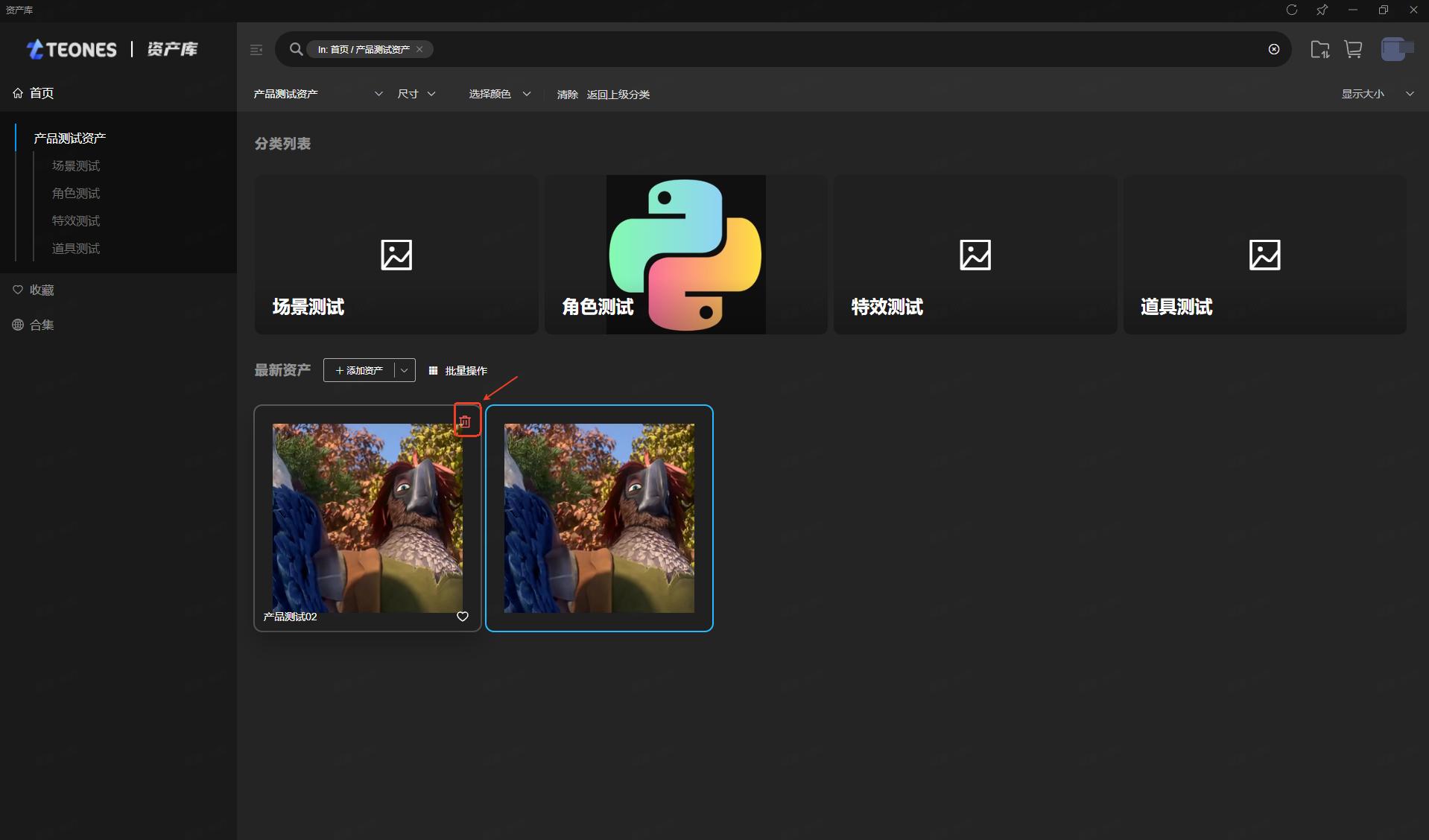 将鼠标移动到需要删除的资产封面上方,右上角会出现删除图标,点击图标即可进行删除