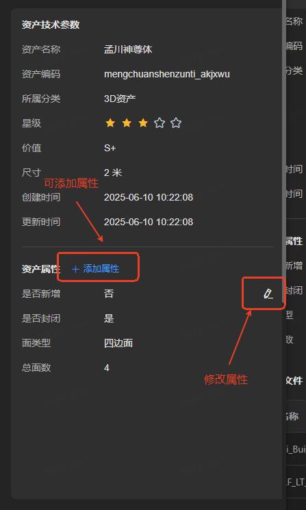 - 鼠标移至需要修改的属性字段上方,右侧出现修改图标,点击即可修改属性