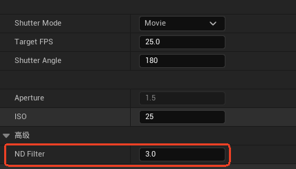 1.2 当你的画面还是很曝光的情况下 ,已经无法修改光圈或者ios 我们可以适当将ND Filter数值调高