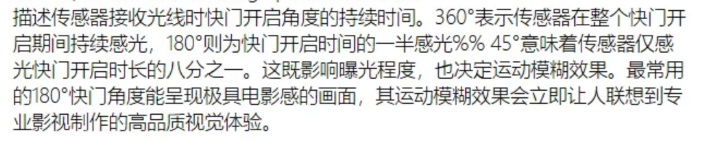 快门角度默认180, 快门角度和目标帧率决定你的运动模糊量,这里我们保持默认