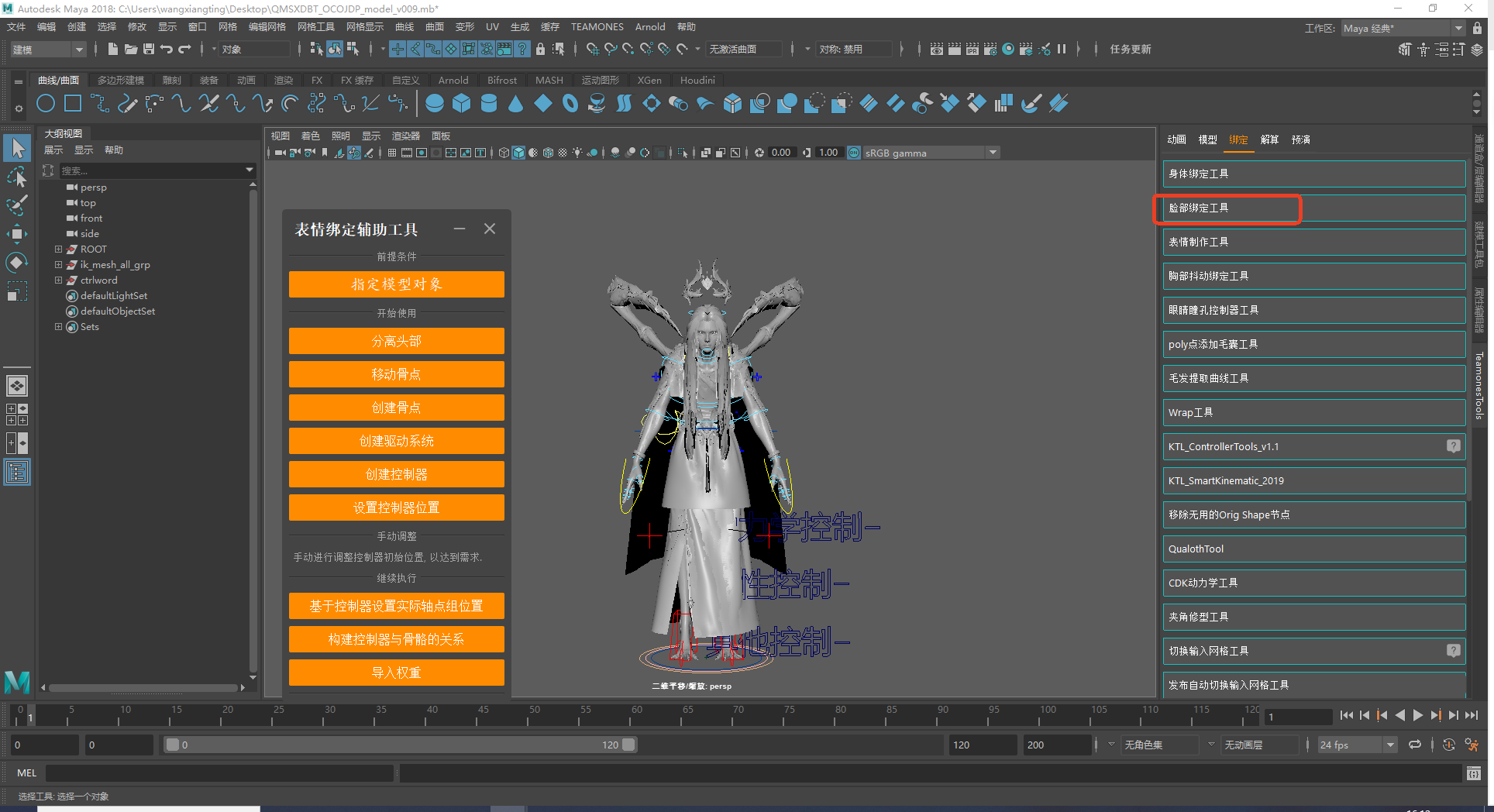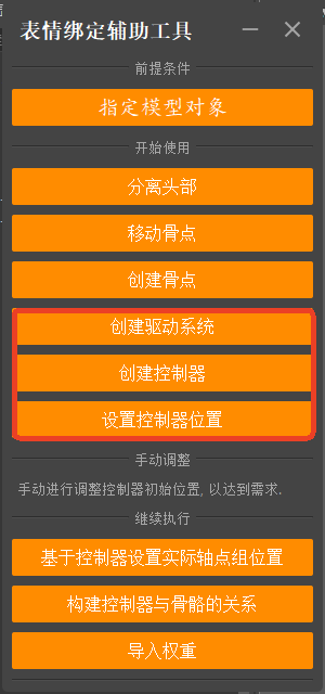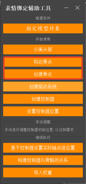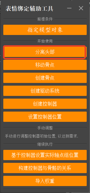该工具可以对角色头部进行分离、骨点的创建与移动驱动系统及控制器的快速创建。