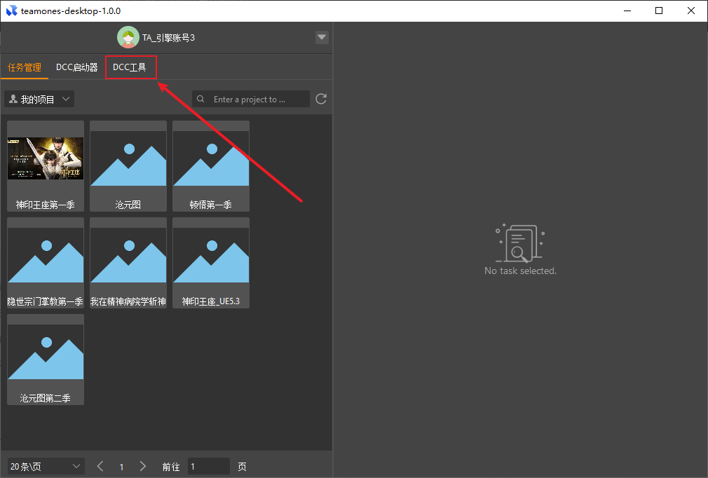- 在Teamones左下角打开DCC工具