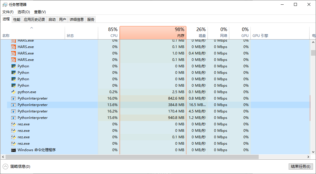 工具默认分配四个线程进行并行处理文件,峰值内存消耗预估4000mb,CPU参考i5-10400f,峰值消耗在80%内,当使用工具的机器配置过低时可能会出现maya报错,解决办法为每次添加fbx小于4个。