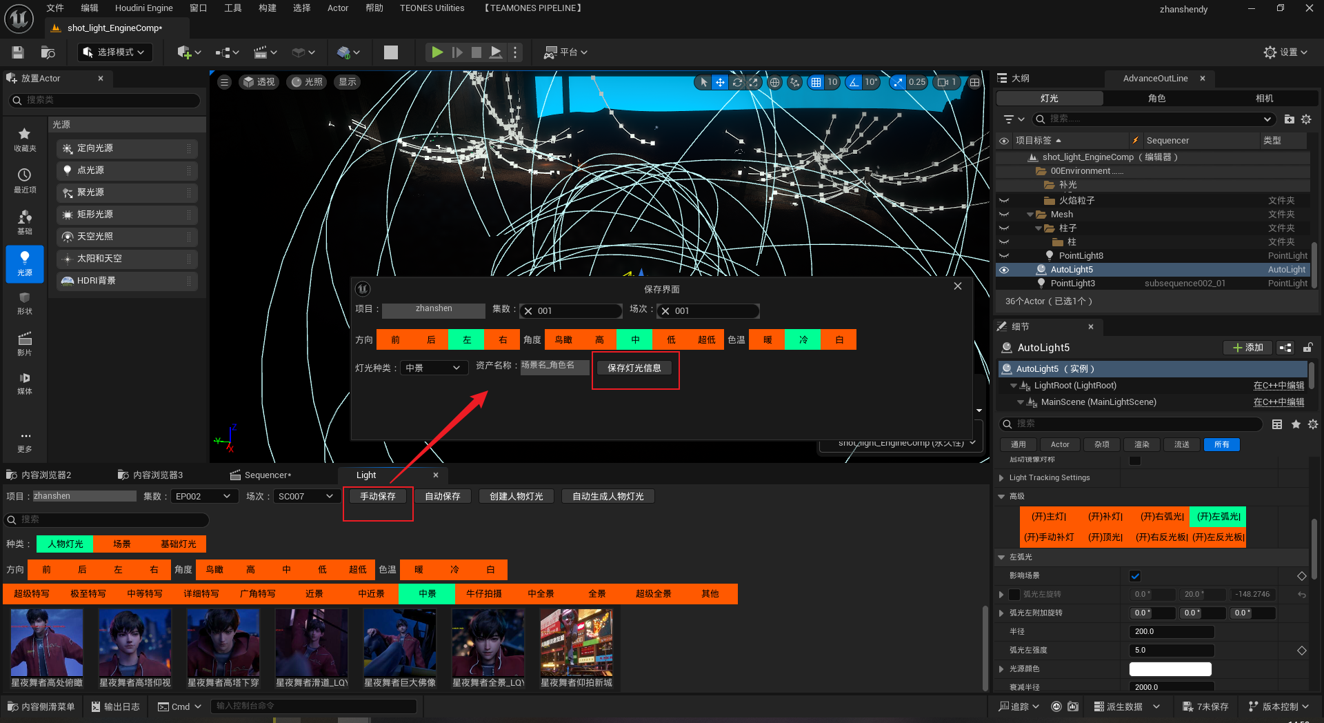 2.6、调整完灯光后在TO灯光模板工具内保存灯光模板,选择对应集数\场次\镜头景别(命名标准 场景_角色名),上传SCM