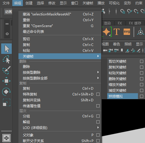 单独选择新相机 编辑-关键帧-烘焙模拟