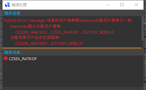● 场景资产是否和Teamones镜头关联的资产是否一致