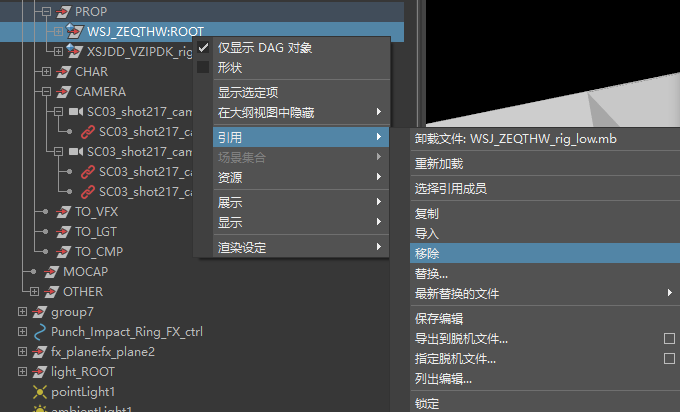 如不在 大纲视图内选中该资产 鼠标右键-引用-移除引用