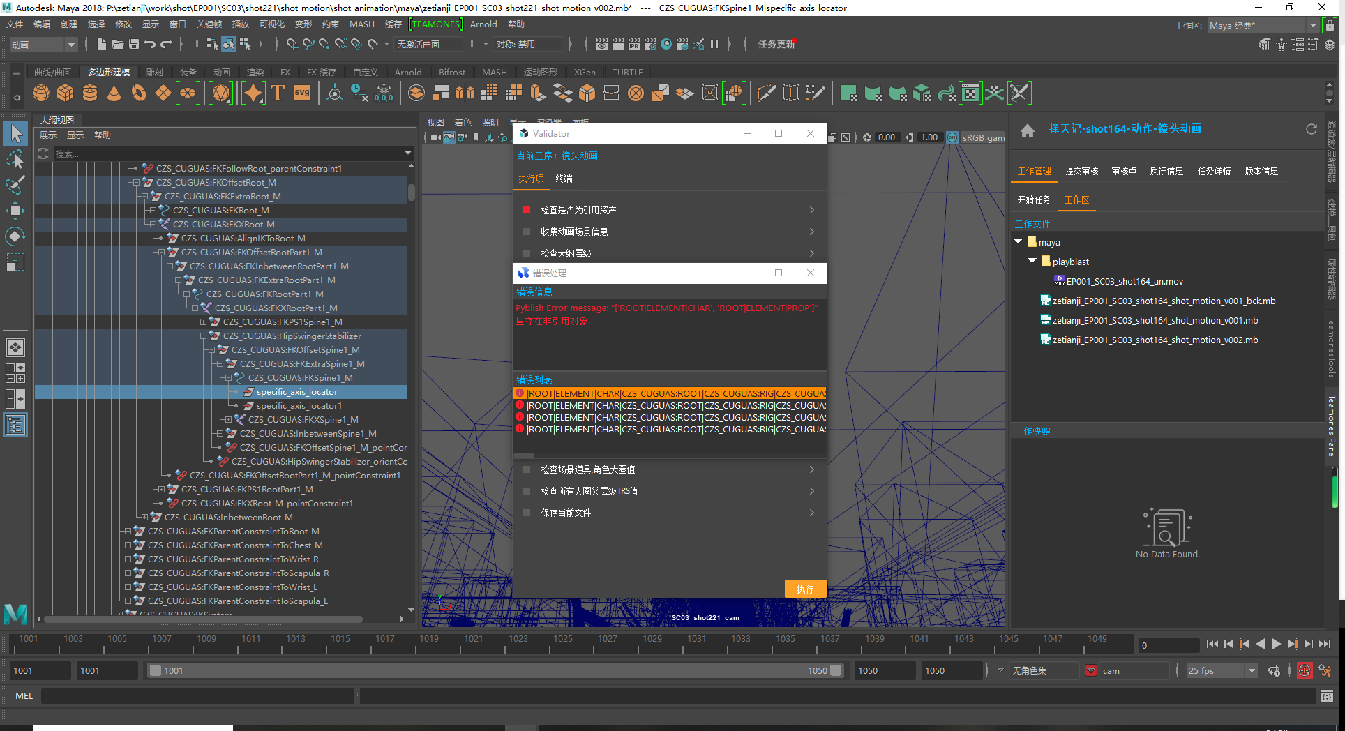 需进行前置发布的对应镜头文件需放置于P盘对应项目work路径中 如神印王座则为