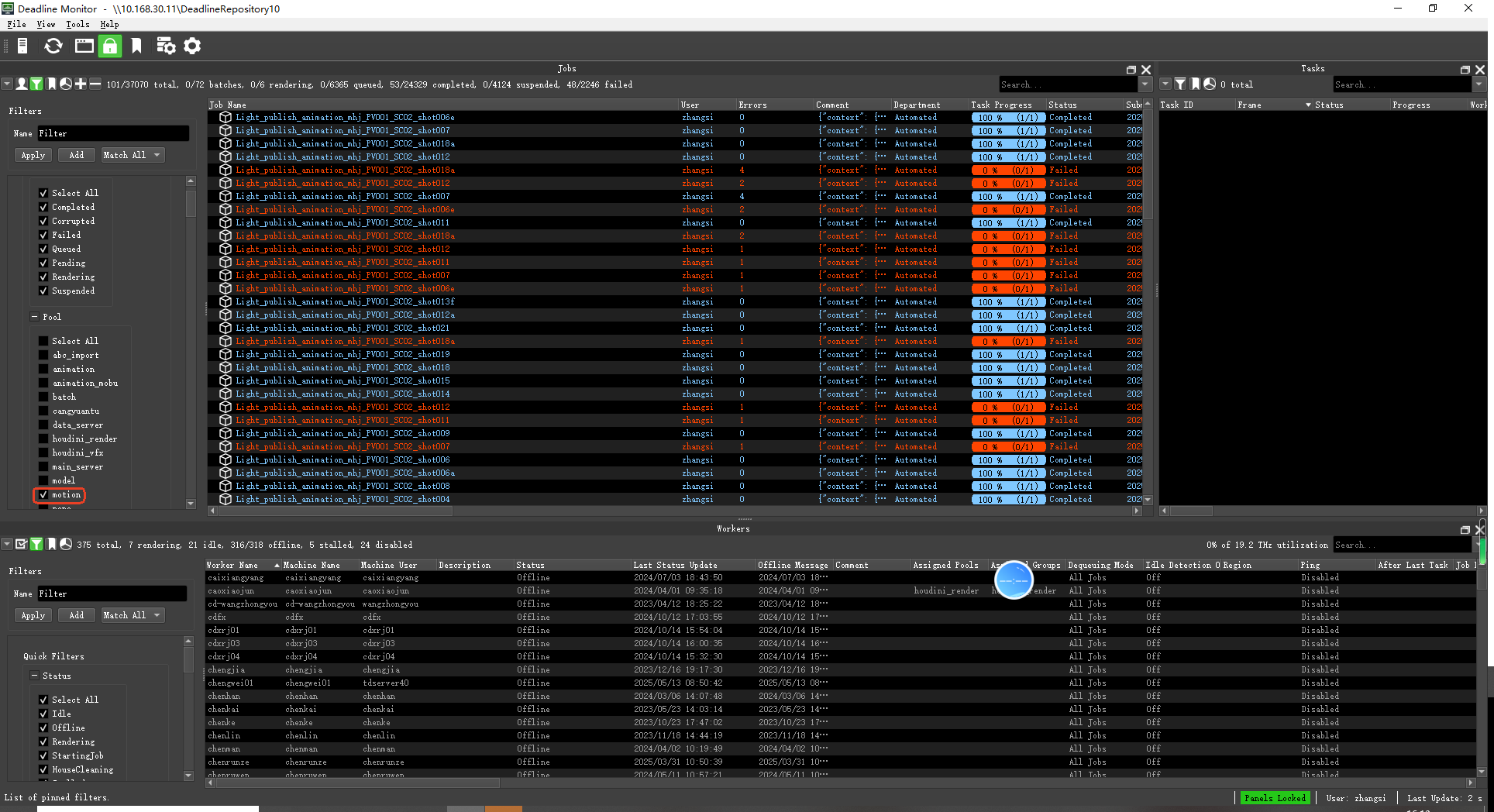 ● 提交远程发布后 会上传至Deadline 勾选motion可查看提交的前置镜头