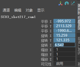 则需 选中原相机 ctrl+D复制一个新相机 再选中新相机 移至CAMERA层级下 打开通道盒选中以上改为0