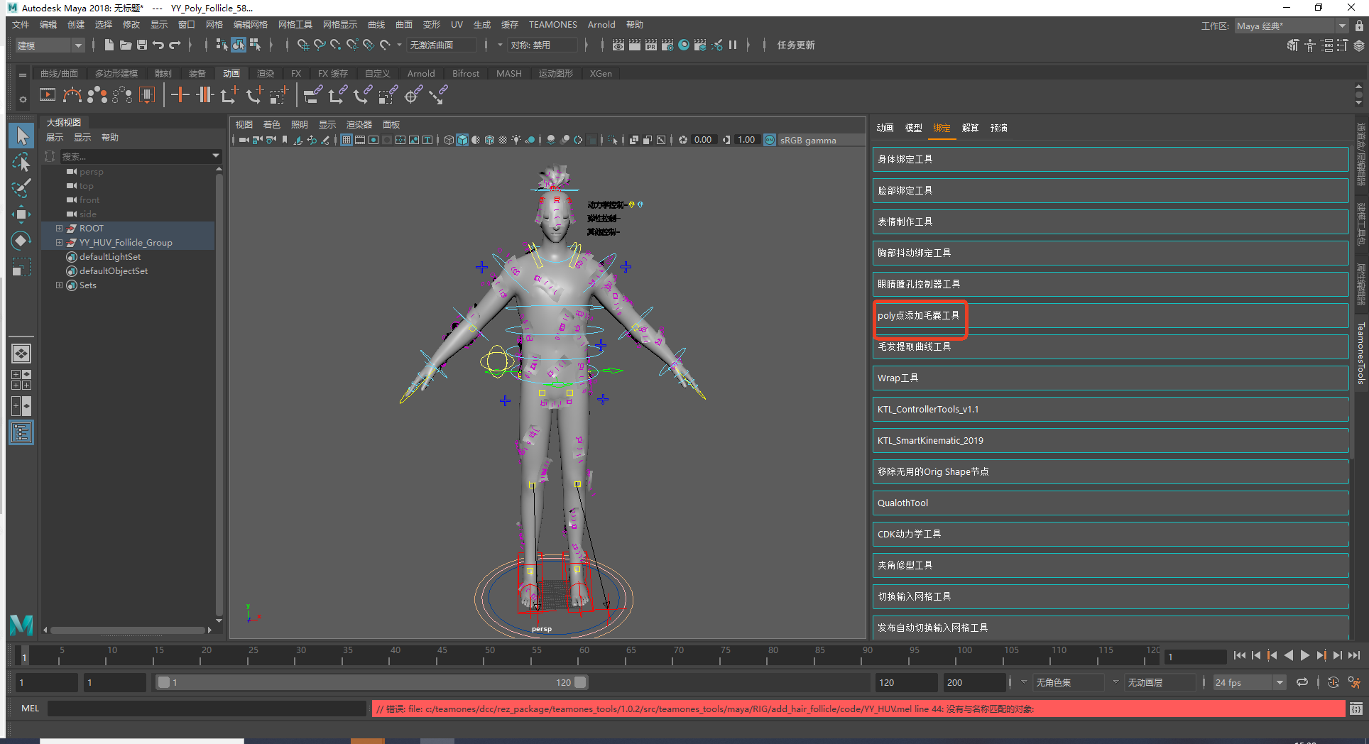 打开maya,点击【绑定】,选择【poly点添加毛囊工具】