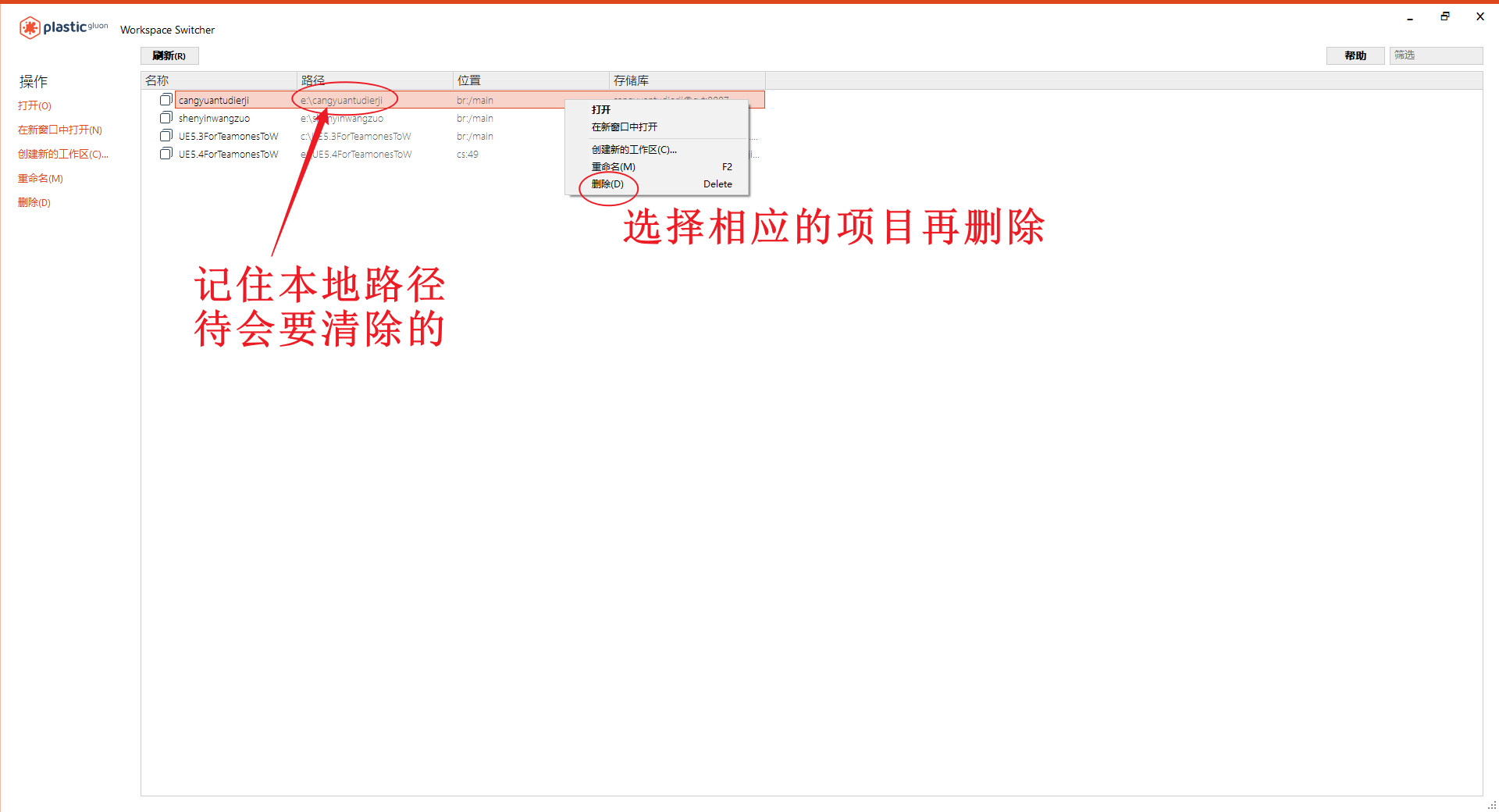2.1、需要删除scm工作区(删除后记得清理本地文件)