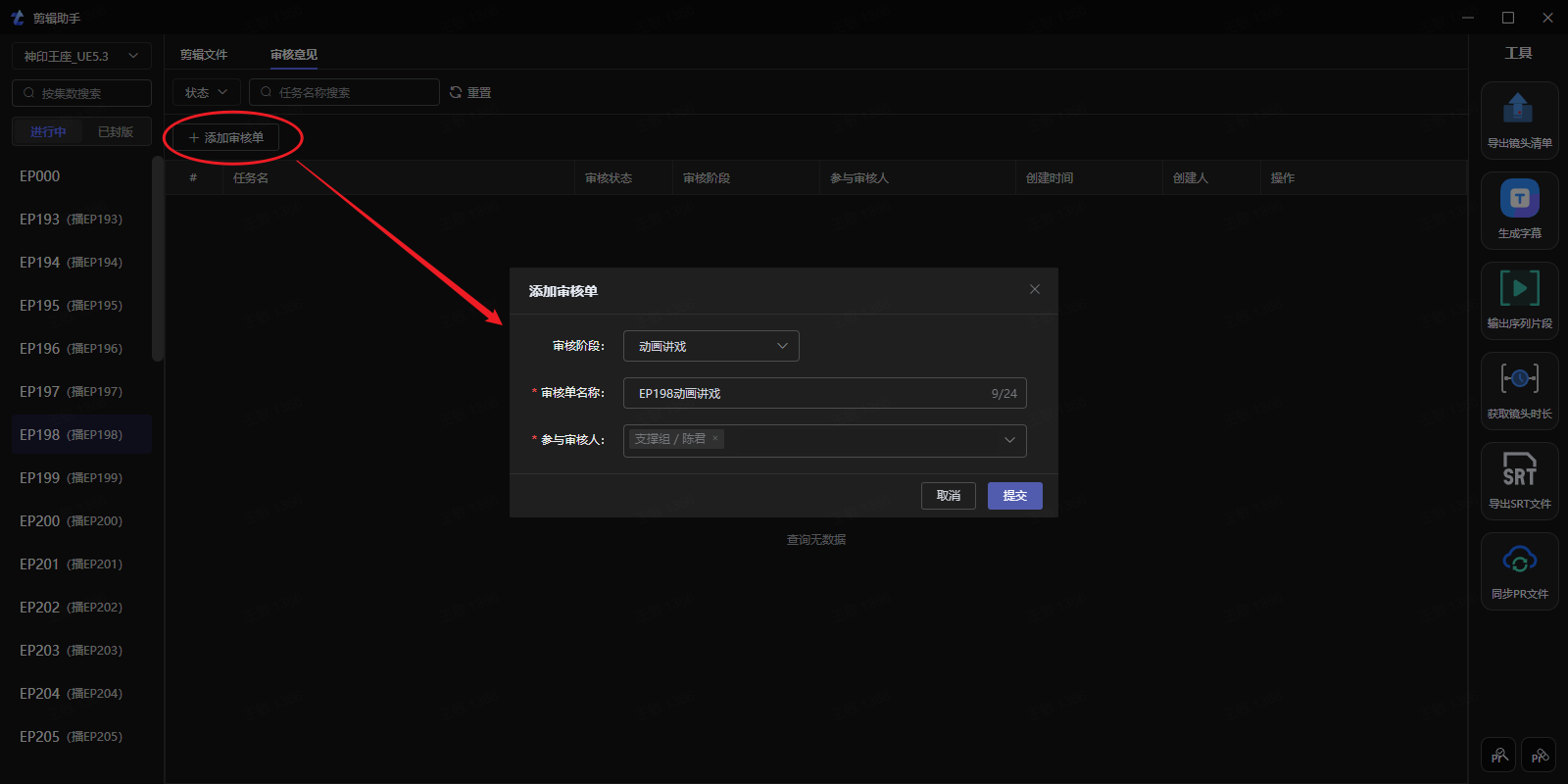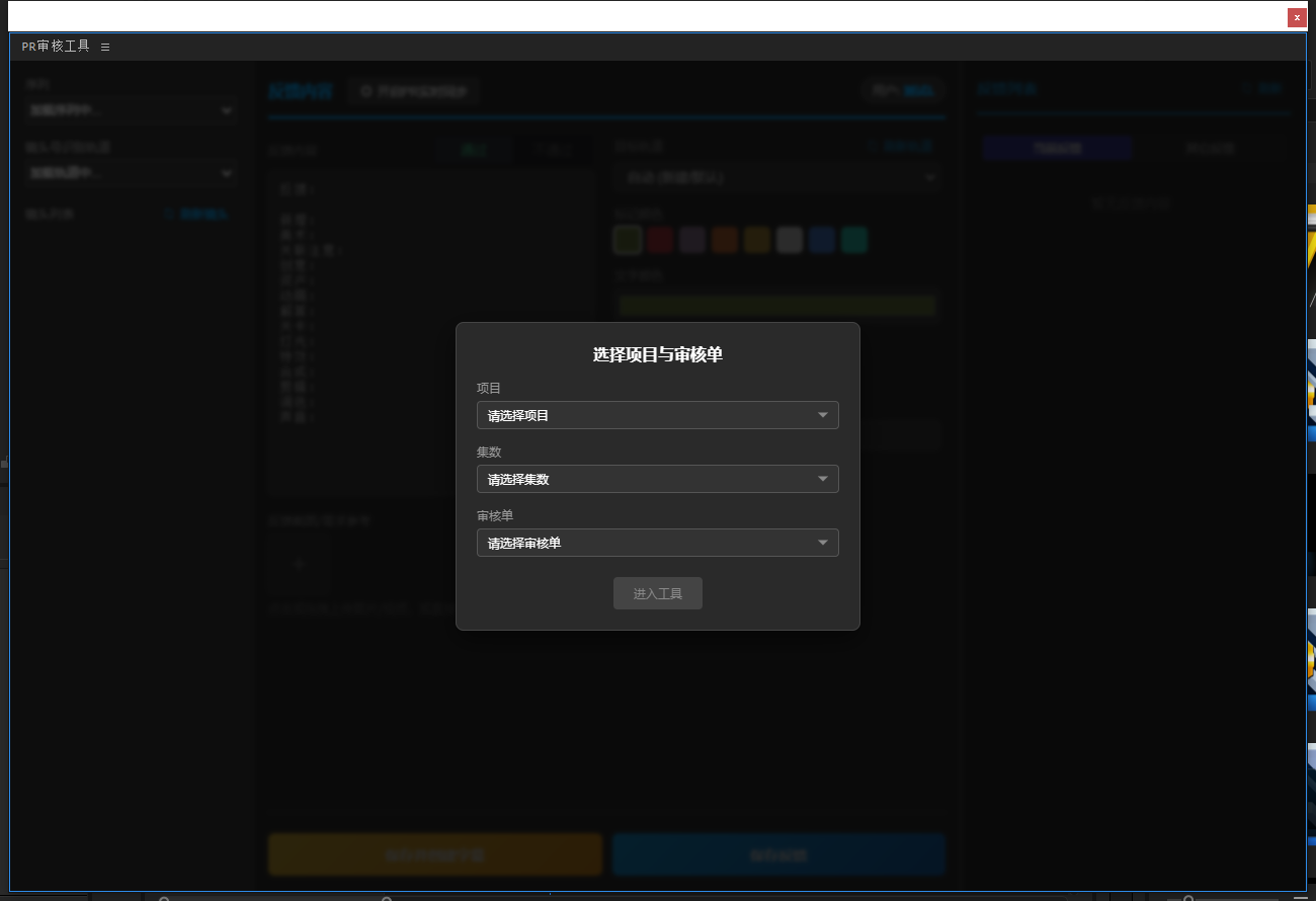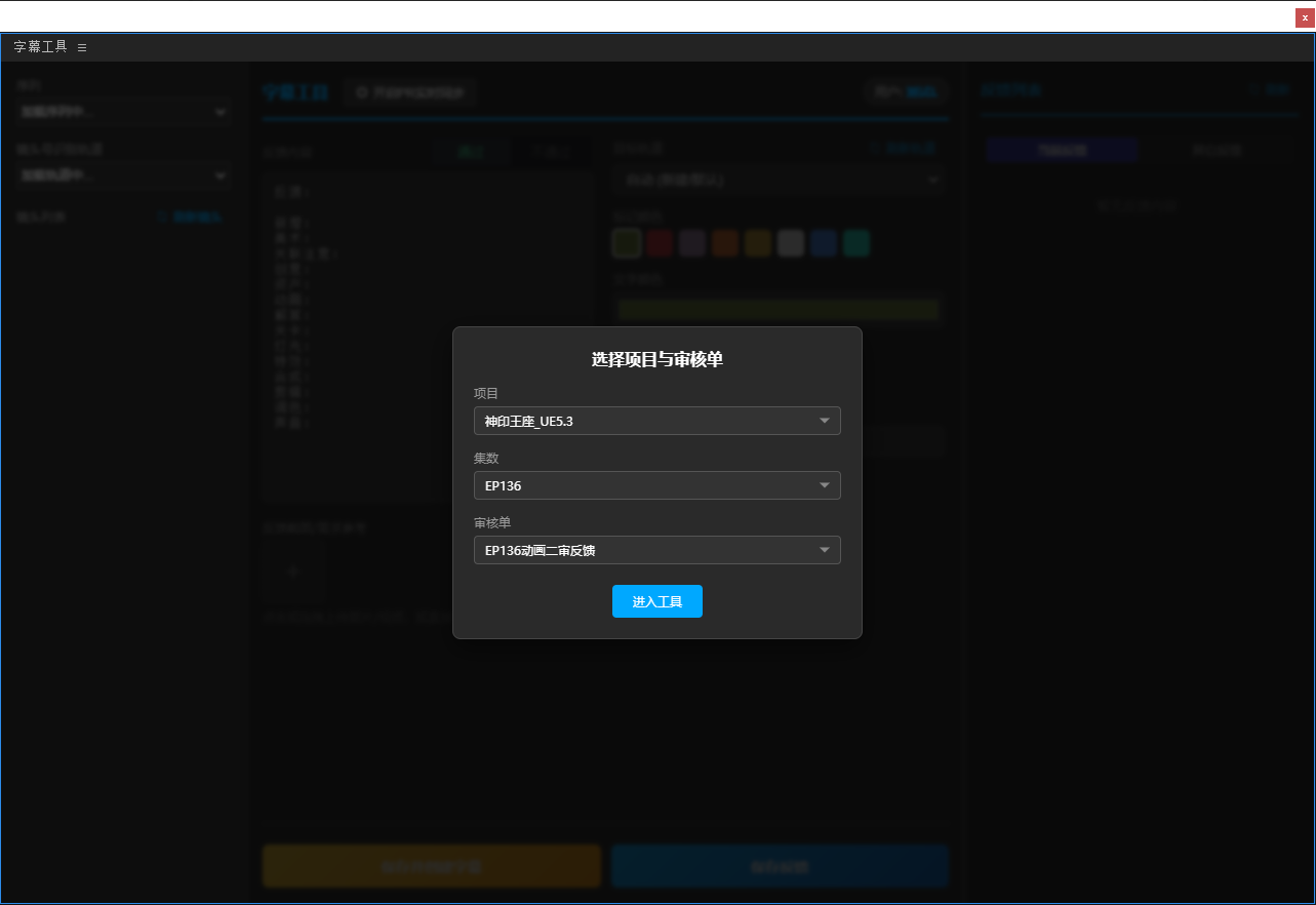 3、选择好项目、集数、审核单,点击“进入工具”