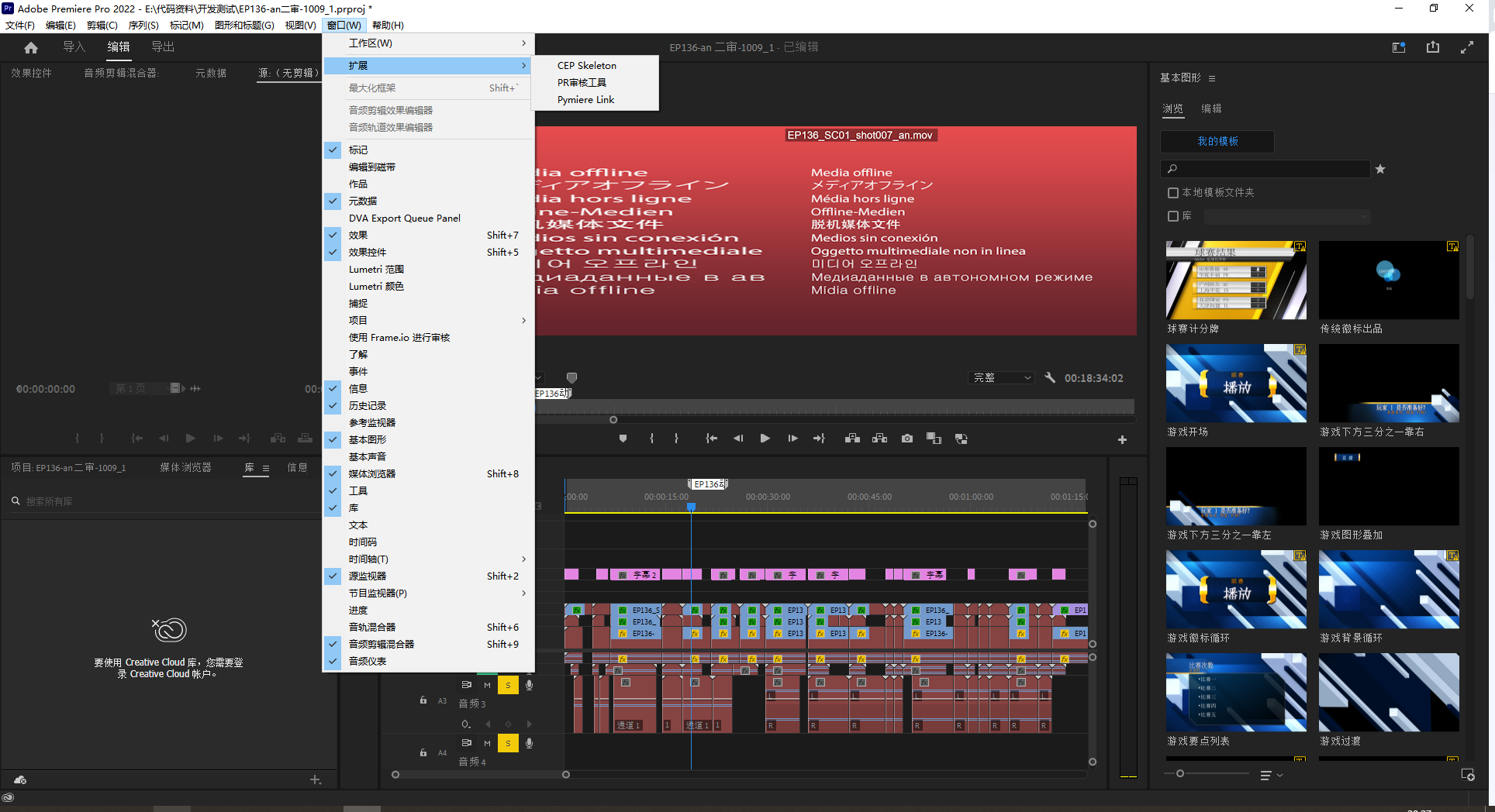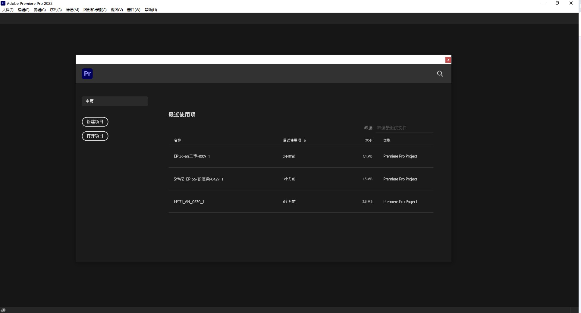 1、打开或重启PR2022,打开项目