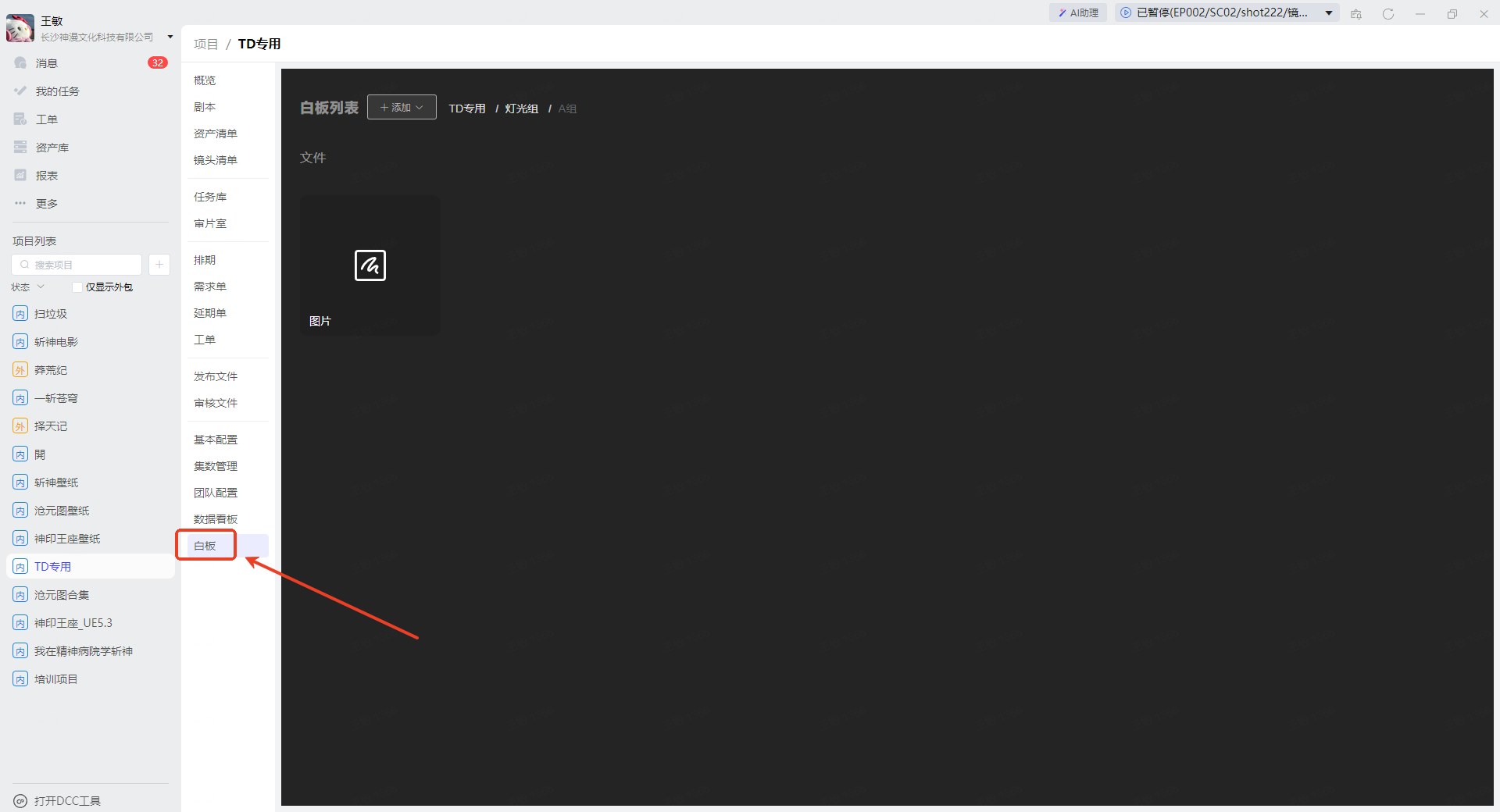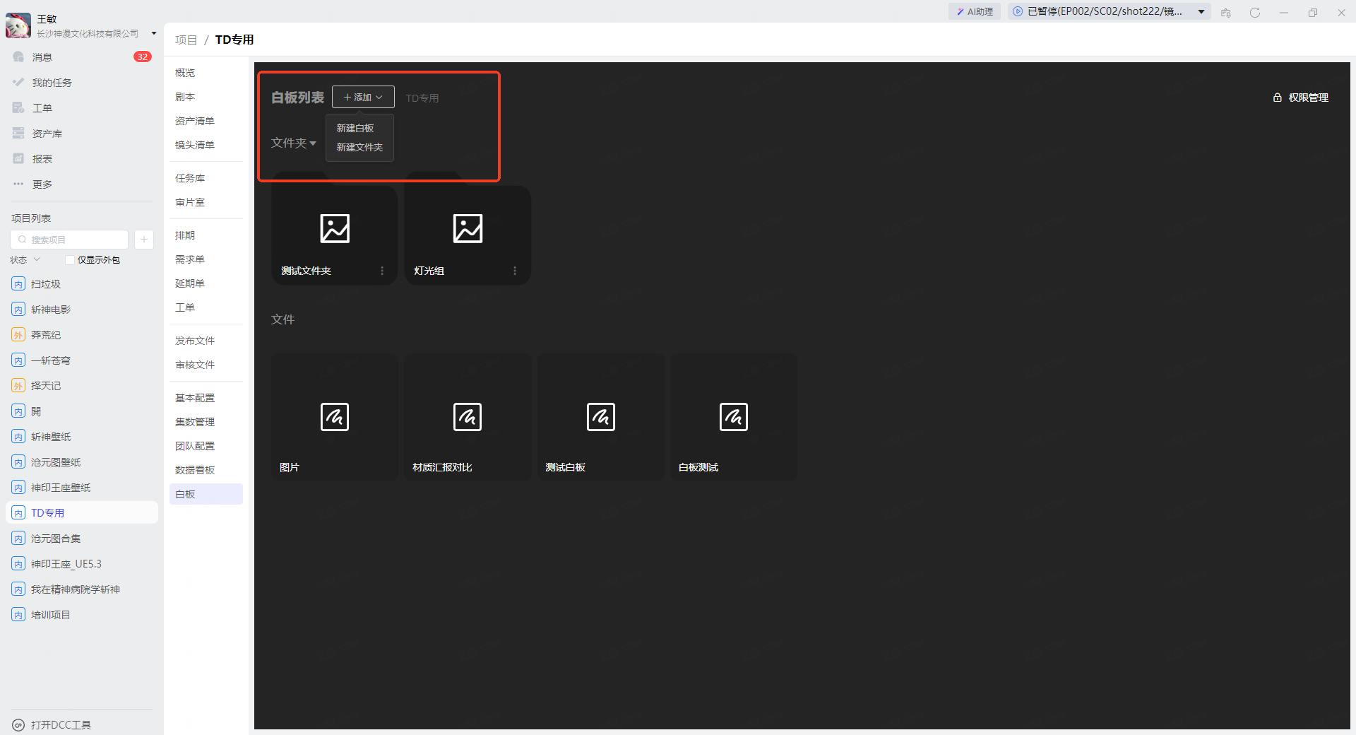 2.3 点击左上角的添加,选择新建白板或文件夹