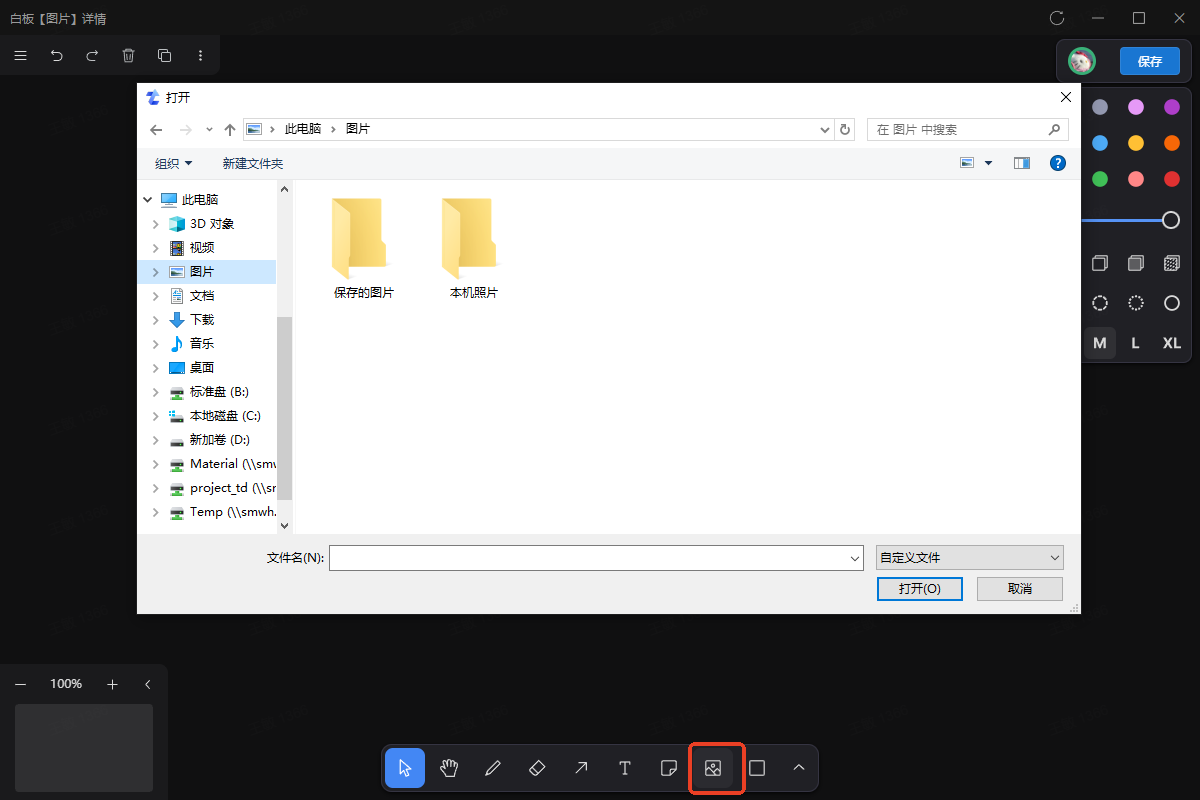 2.4 新建好白板后,将要放的文件直接拖进来即可