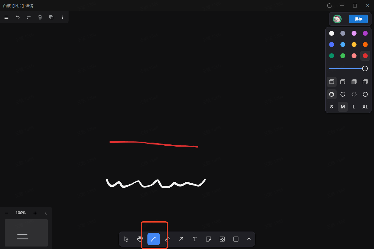 2.5 选择涂鸦笔,自定义颜色,直接在白板上绘制
