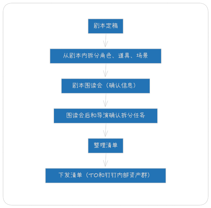 - 将资产拆分版本的剧本对齐围读会的需求整理好,然后发给导演,与导演确认资产数量是否有需要删减的地方,以及和导演确认导演是否有特殊资产需求