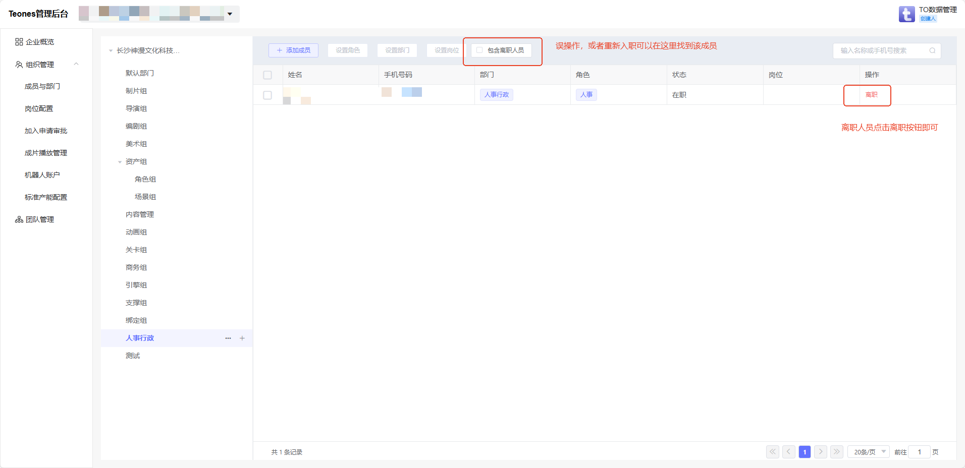 | 3. 离职人员标记 | 把离职人员标记为离职 |