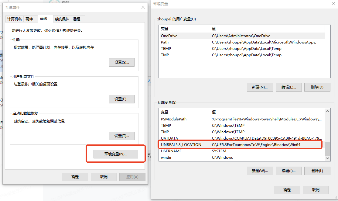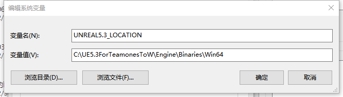 C:\UE5.3ForTeamonesToW\Engine\Binaries\Win64四、环境变量设置完成后需要重启电脑,然后就可以通过DCC打开软件从而启动项目