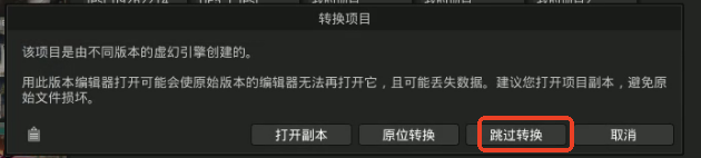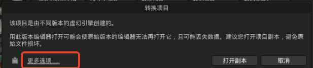 弹出下面界面后选择“更多选项”,然后选择“跳过转换”,等待引擎打开即可