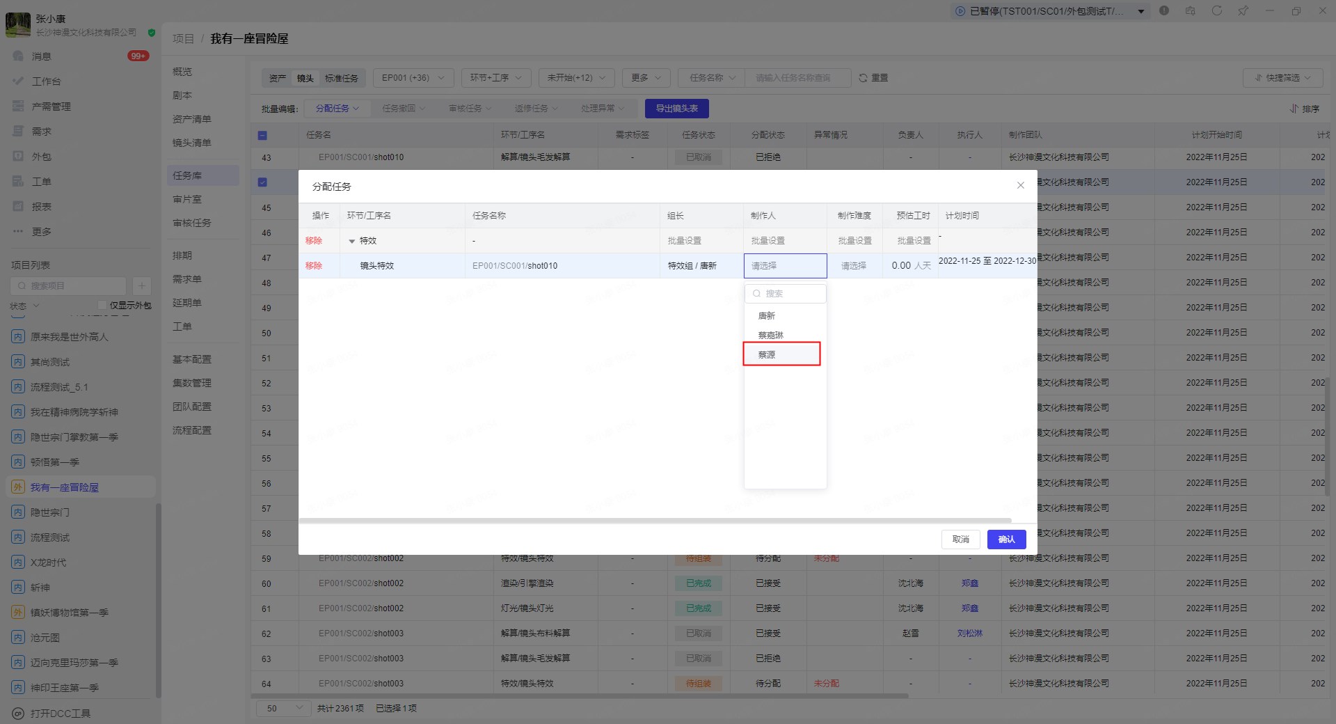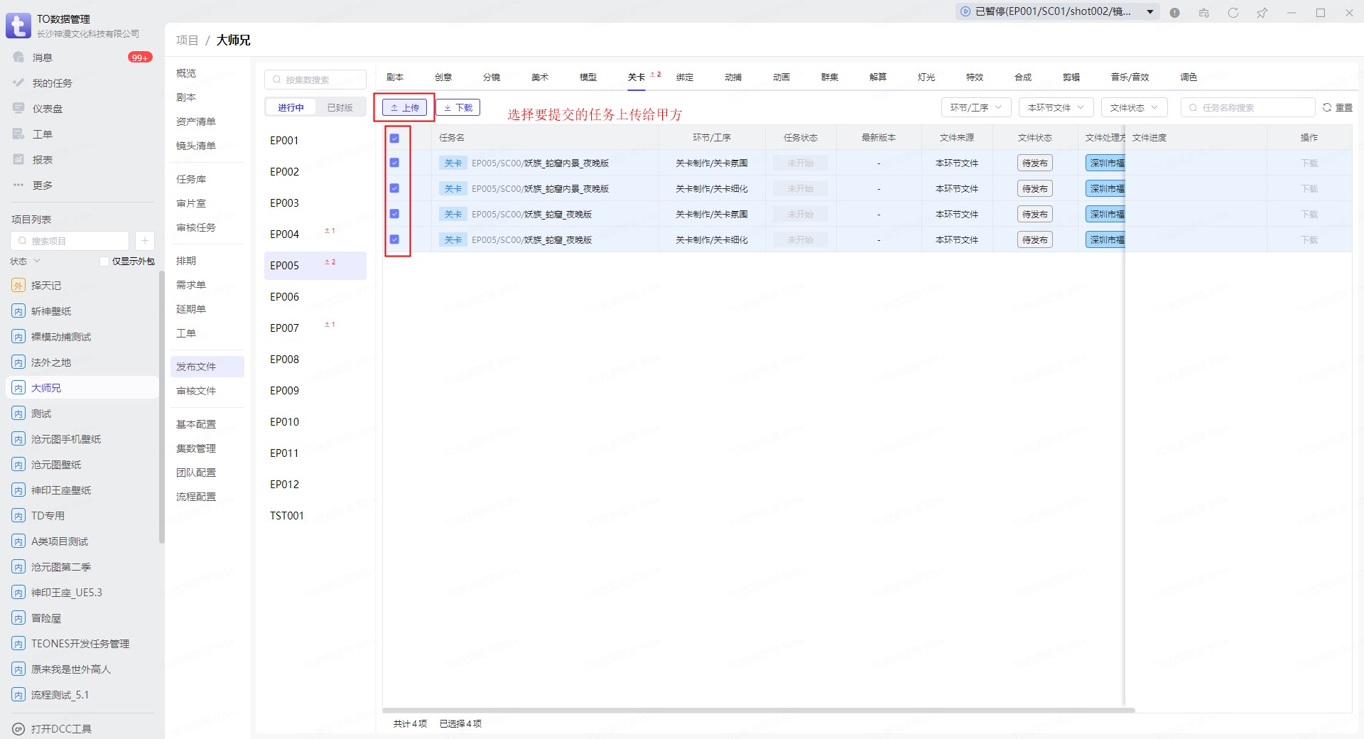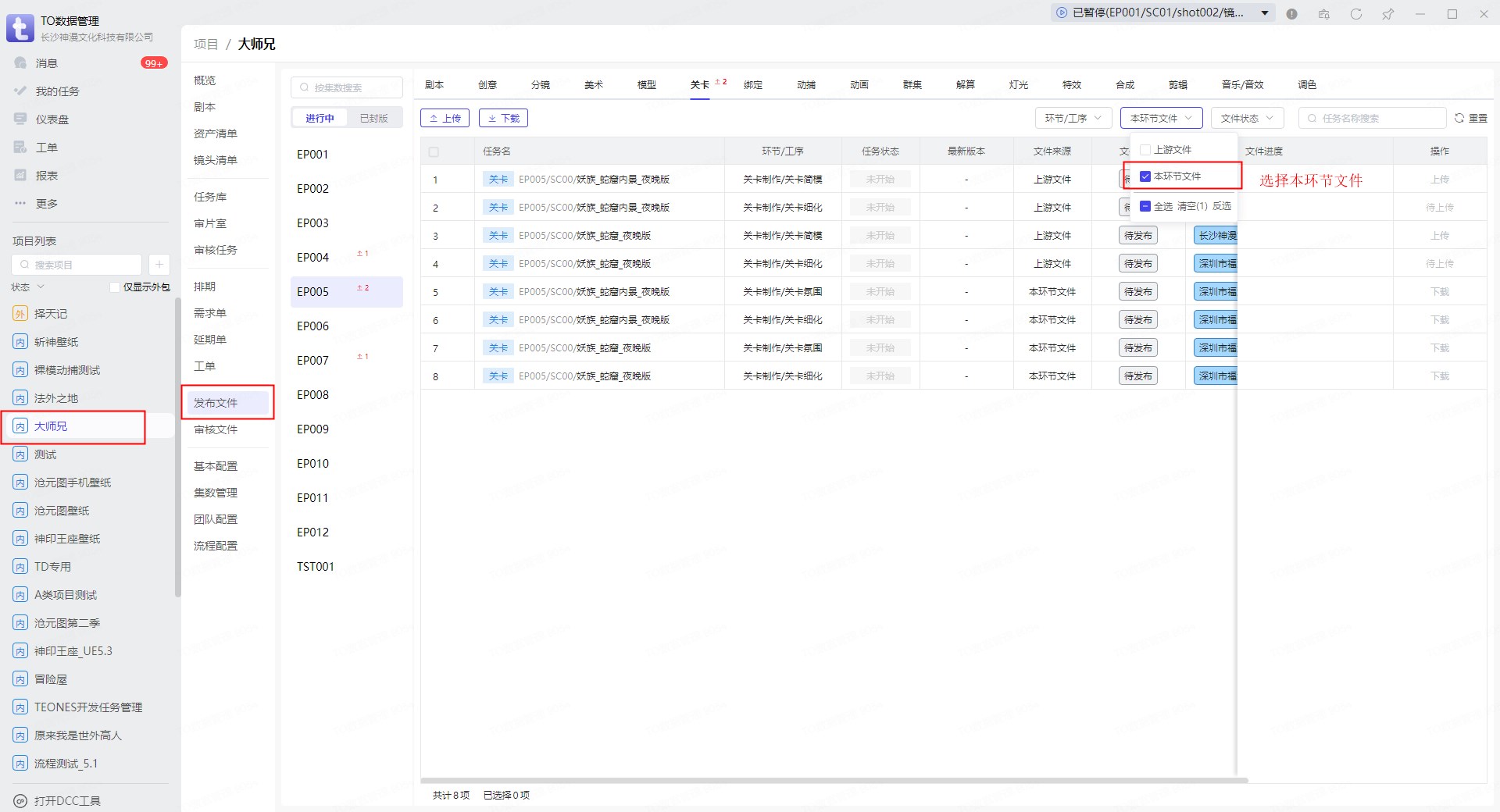 选择指定项目、指定集数、指定环节,选择本环节文件。