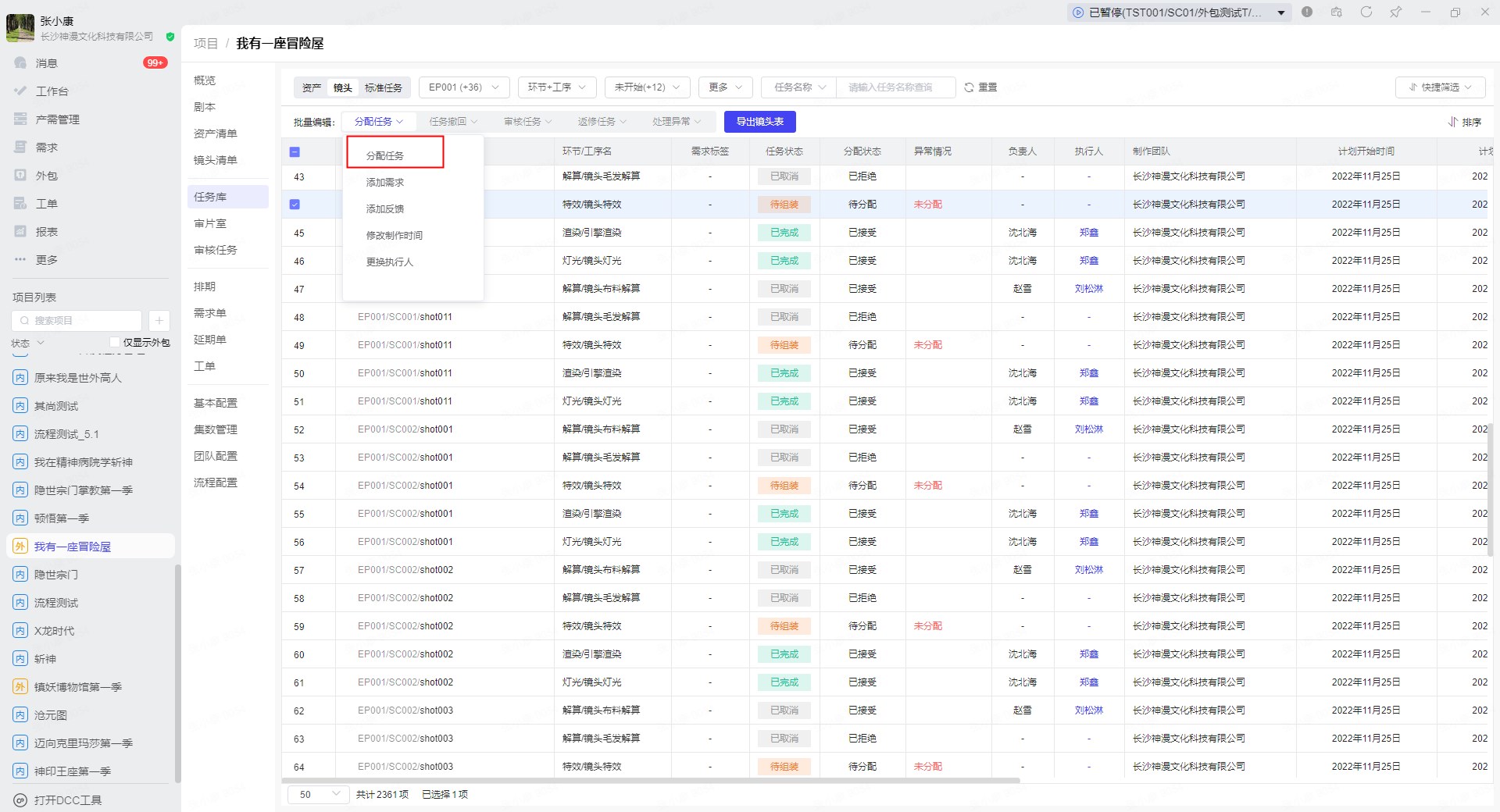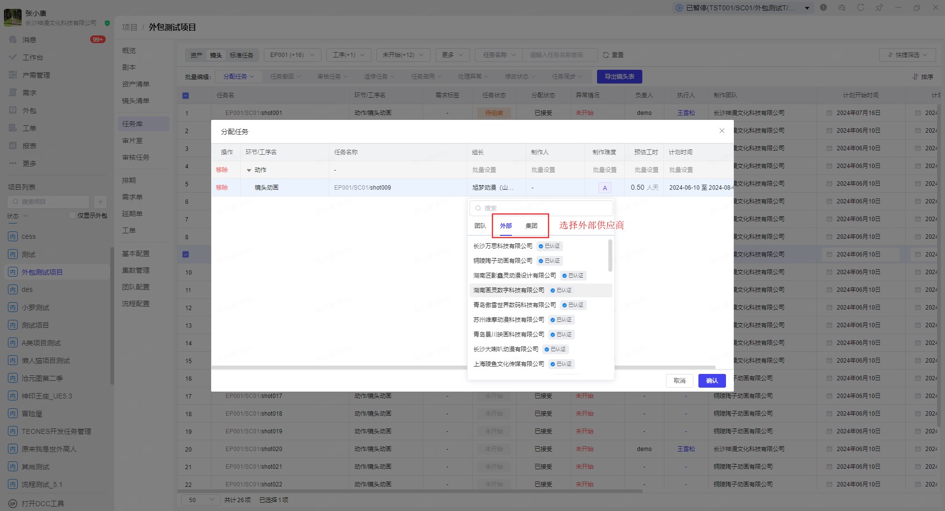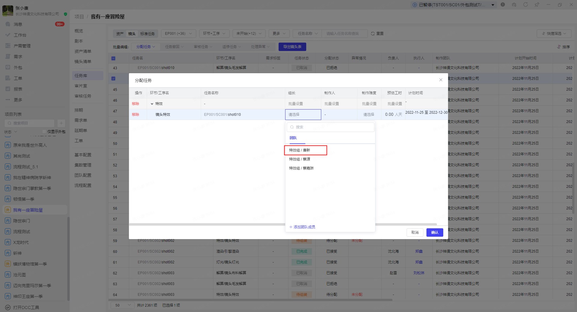 选择指定项目、指定集数、指定环节,选择本环节文件。