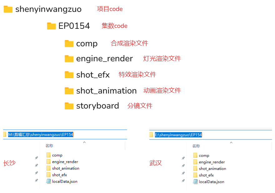 目录结构,武汉和长沙保持一致。这样能保证pr剪辑文件回到武汉后只需要重新指认本地E盘即可。