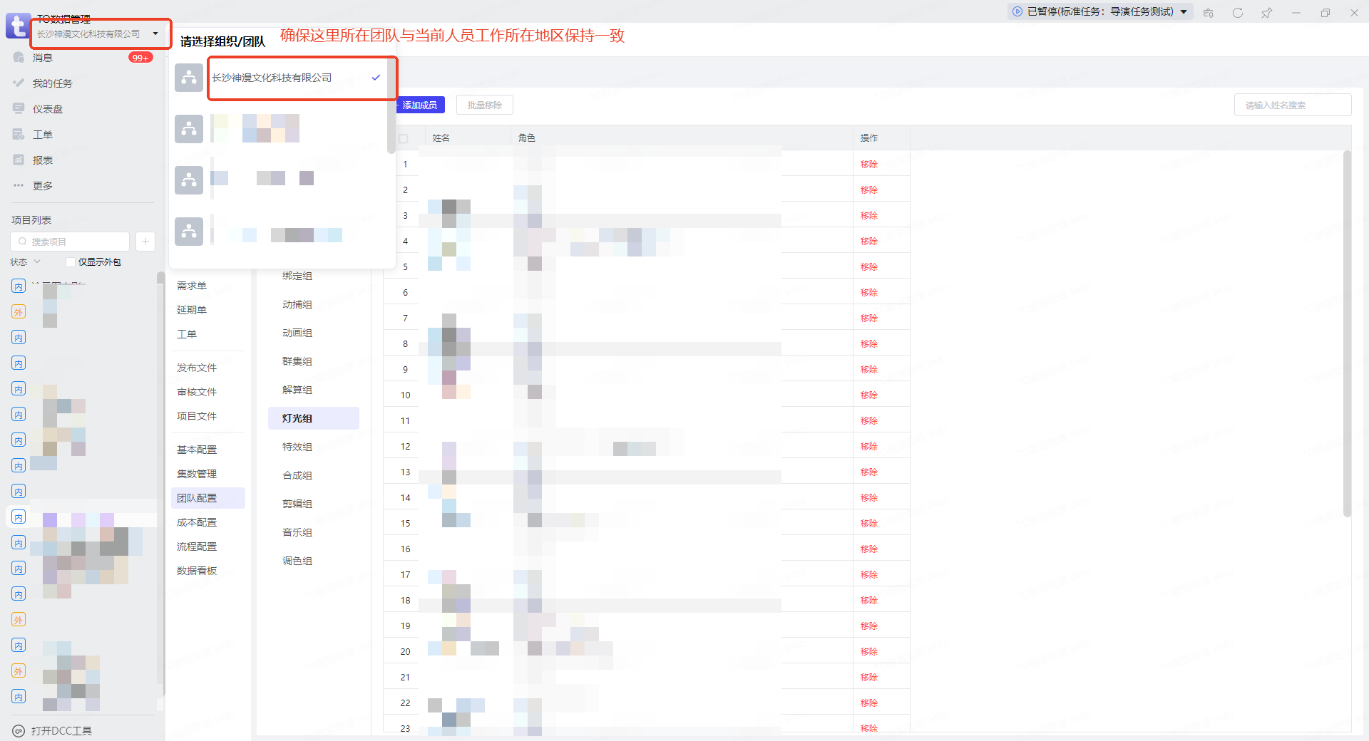 组长在异地管理武汉《xx》项目任务分配、审核,需要把团队切换回武汉分公司,在甲方项目做任务管理。