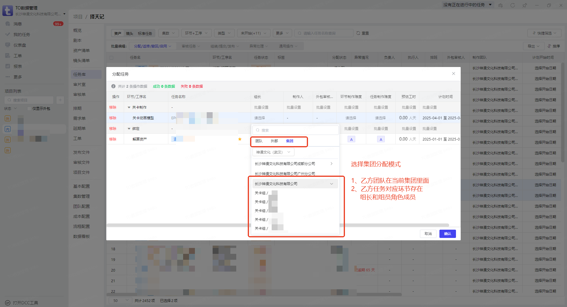 该流程同情况三,需要保持在甲方任务所在团队管理项目任务分配