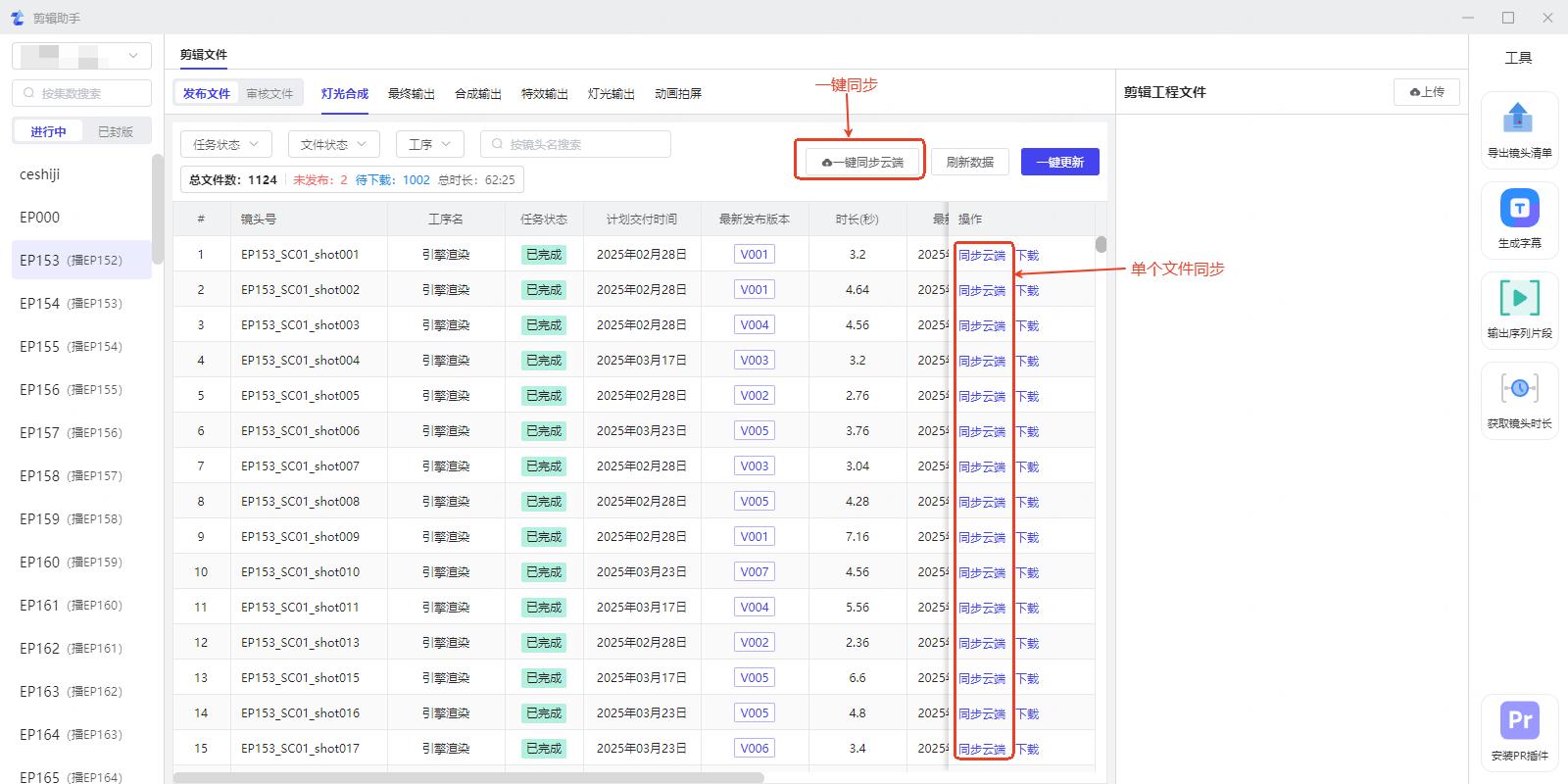 - 单个下载:仅更新指定镜头EXR序列至目标目录。