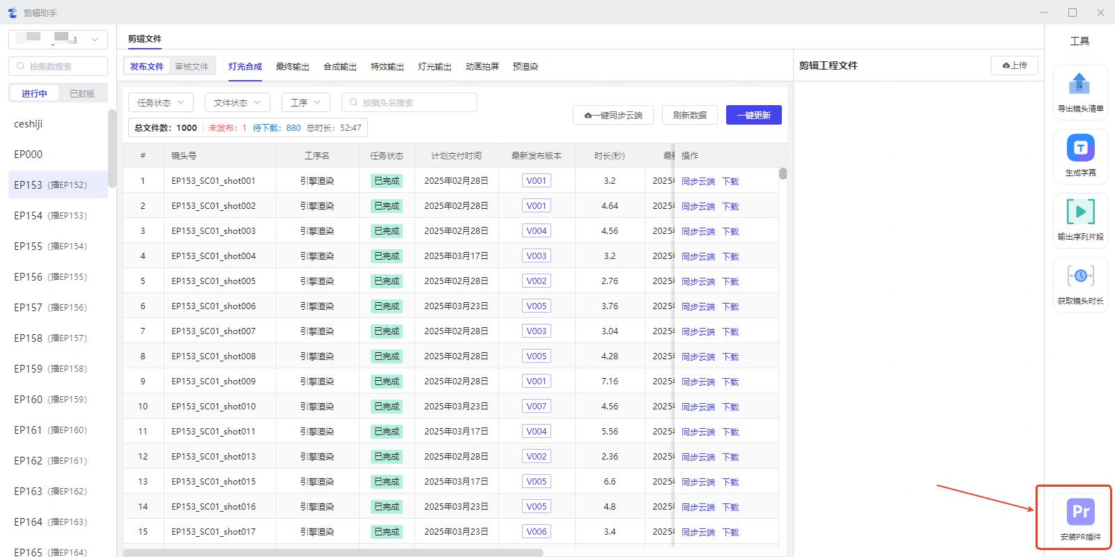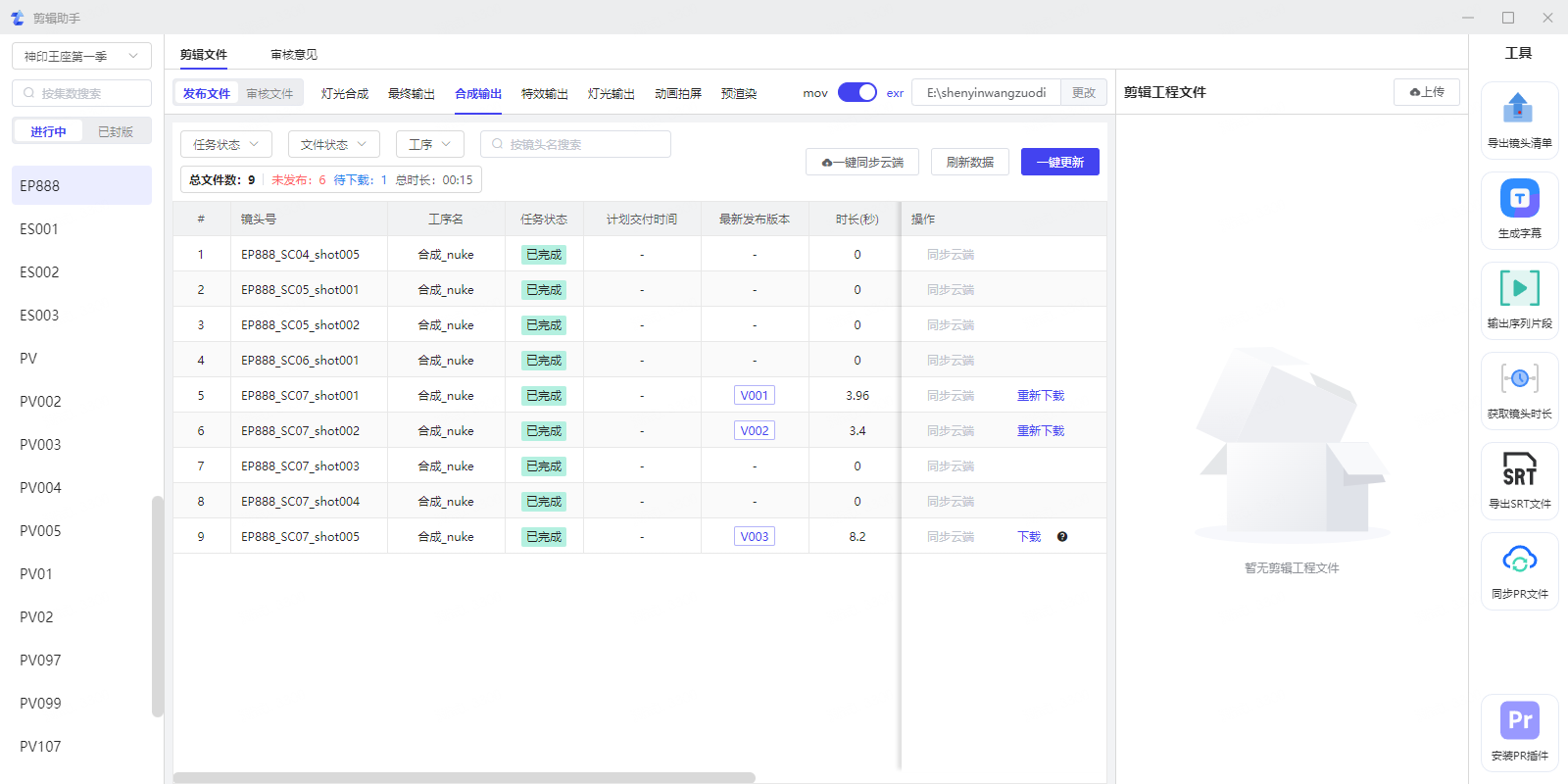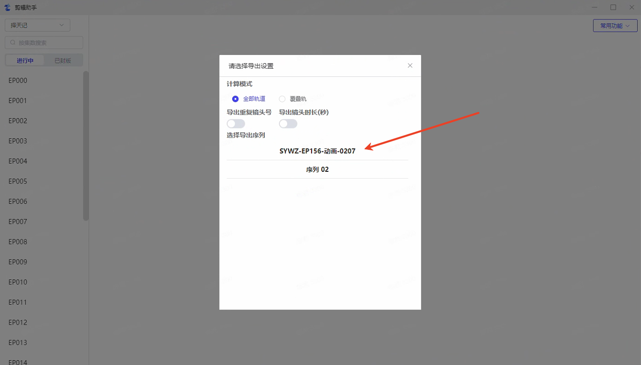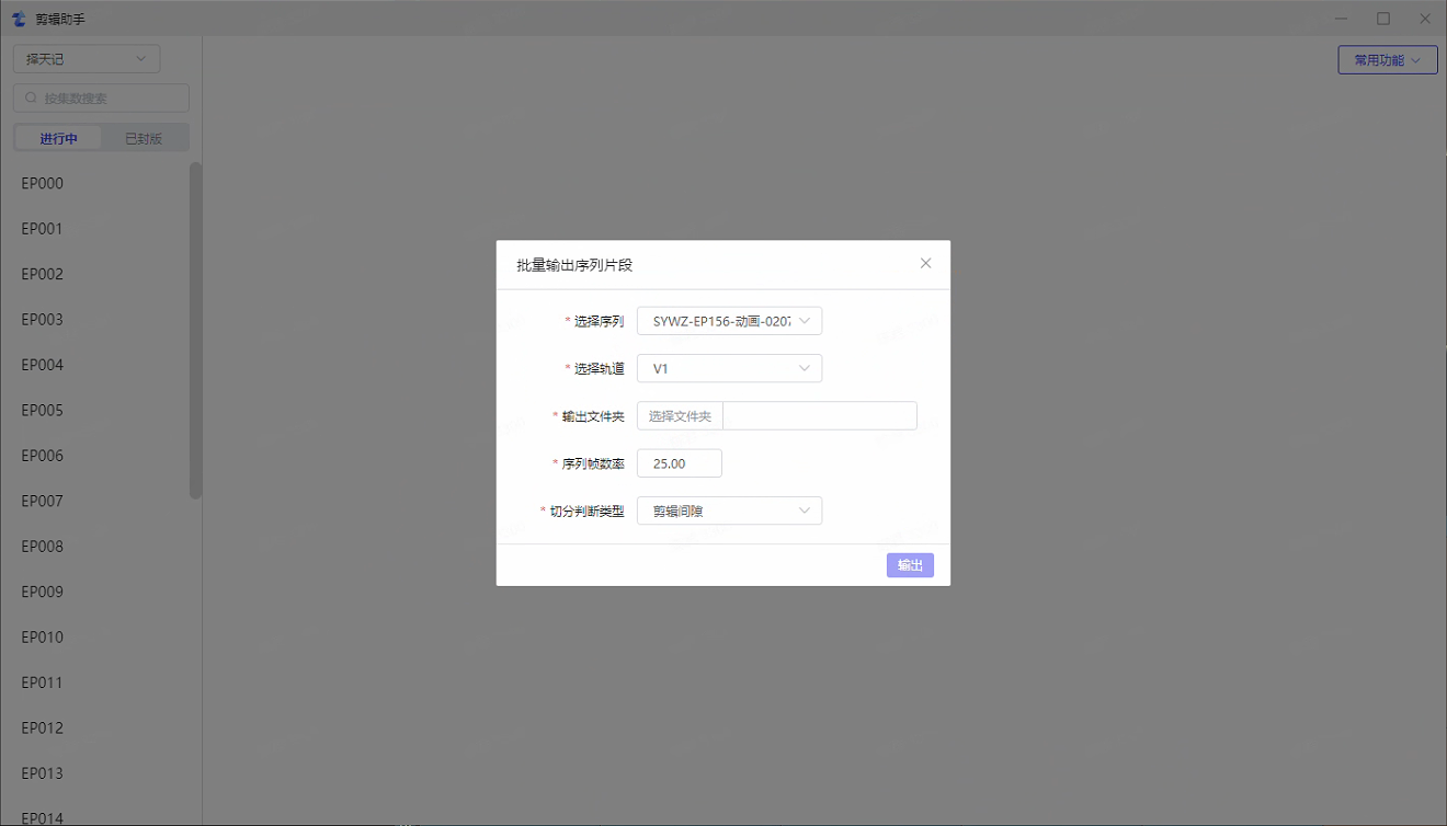- 打开剪辑助手,选择项目与集数,选择合成输出;