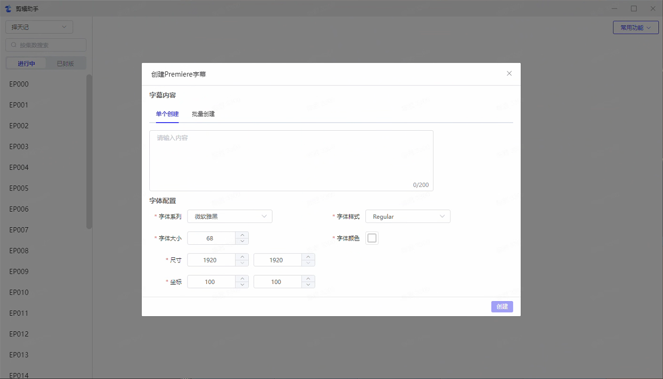 此功能可以自动在PR中生成指定内容或镜头号的字幕,可以单个创建也可以批量创建