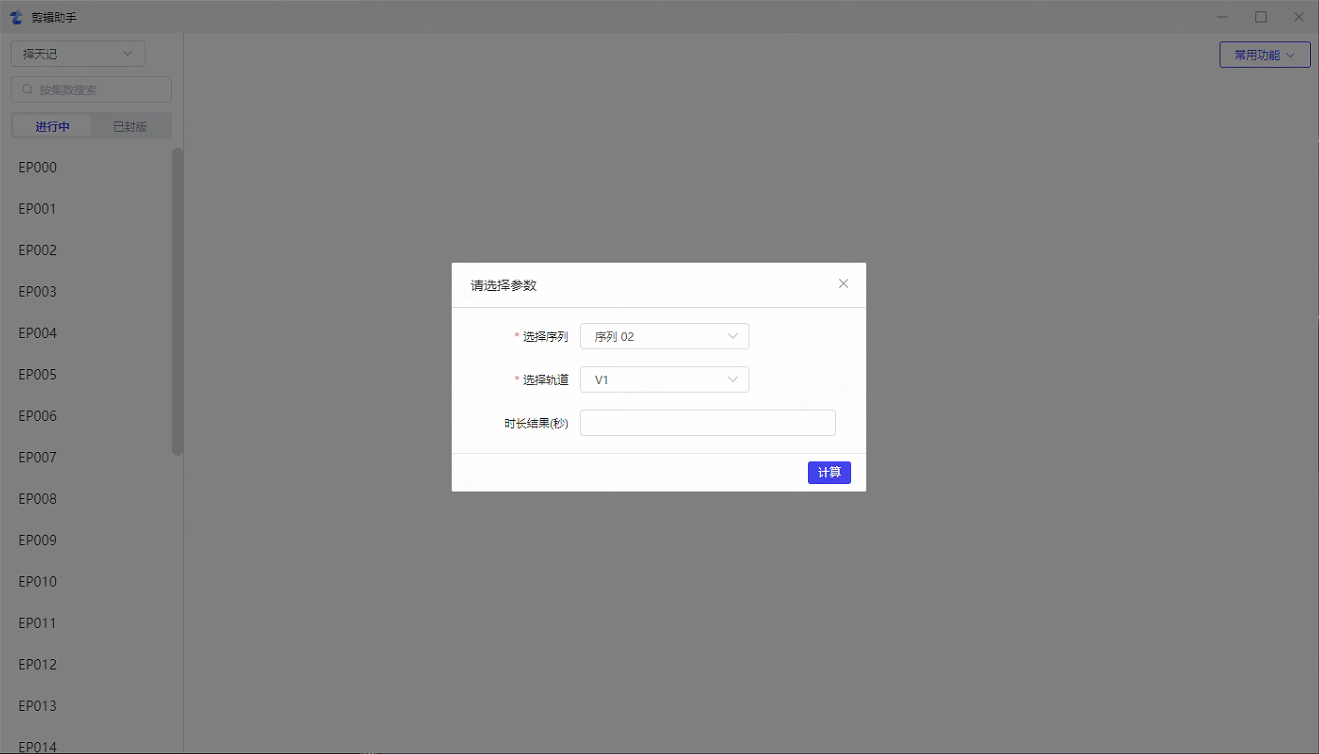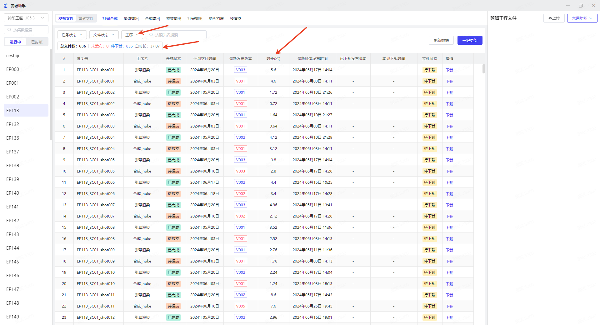 可在剪辑助手中查看镜头时长和总时长,可根据选择的工序统计总时长