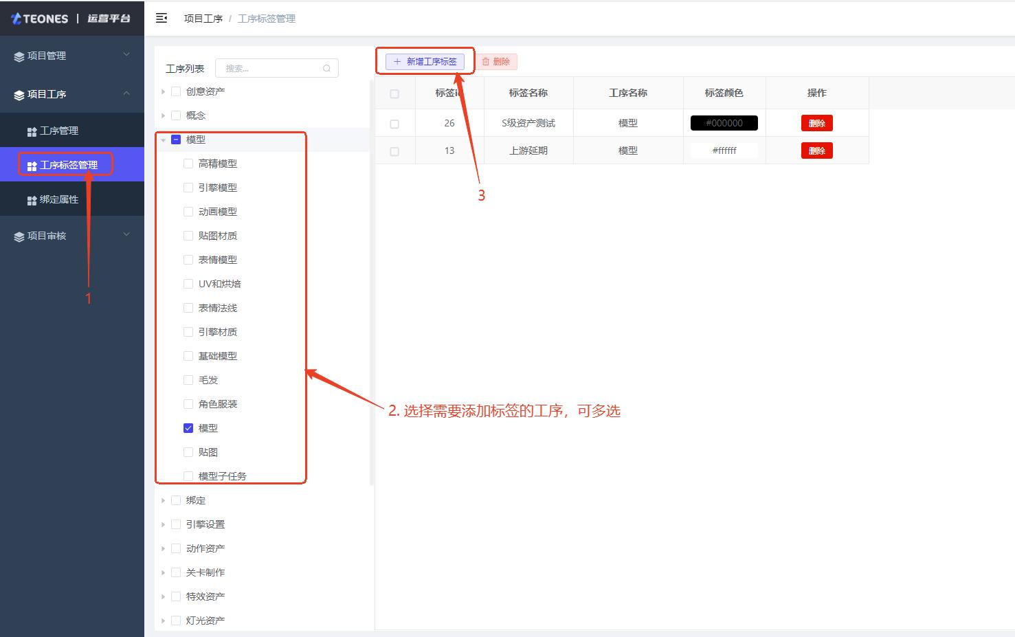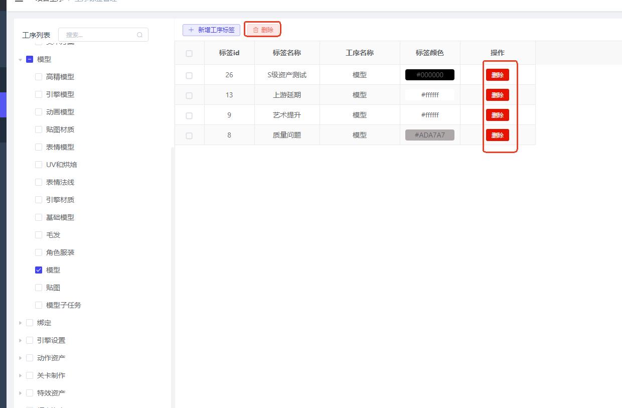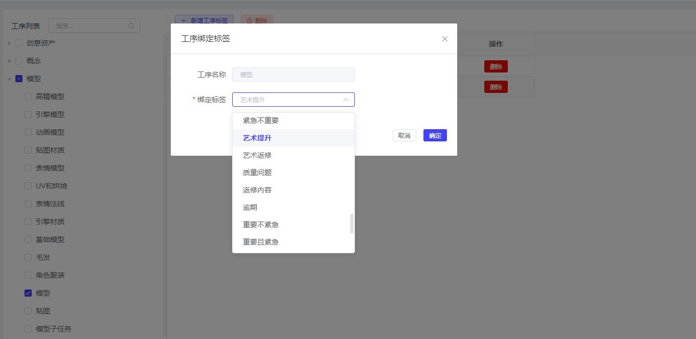 项目管理 -> 项目工序 -> 工序标签管理