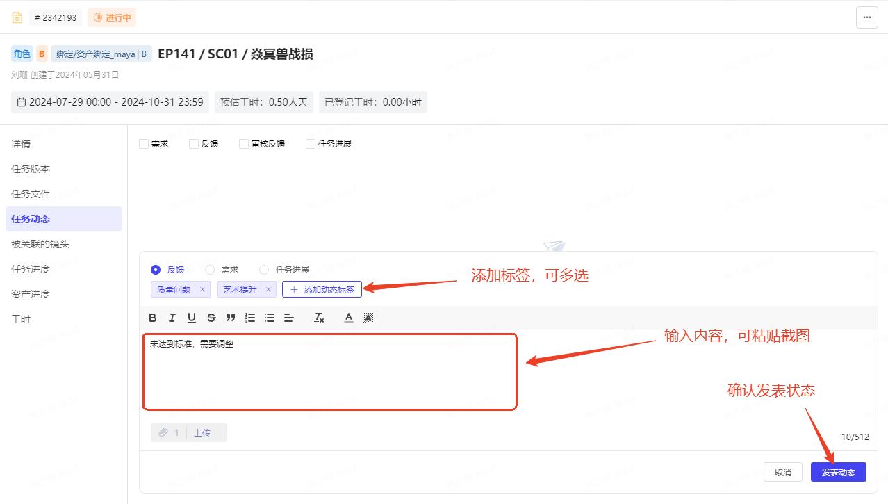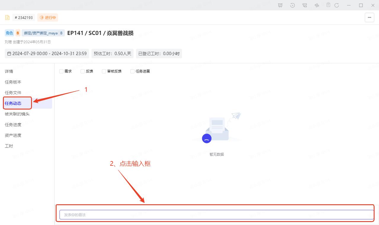进入任务卡片 -> 任务动态
