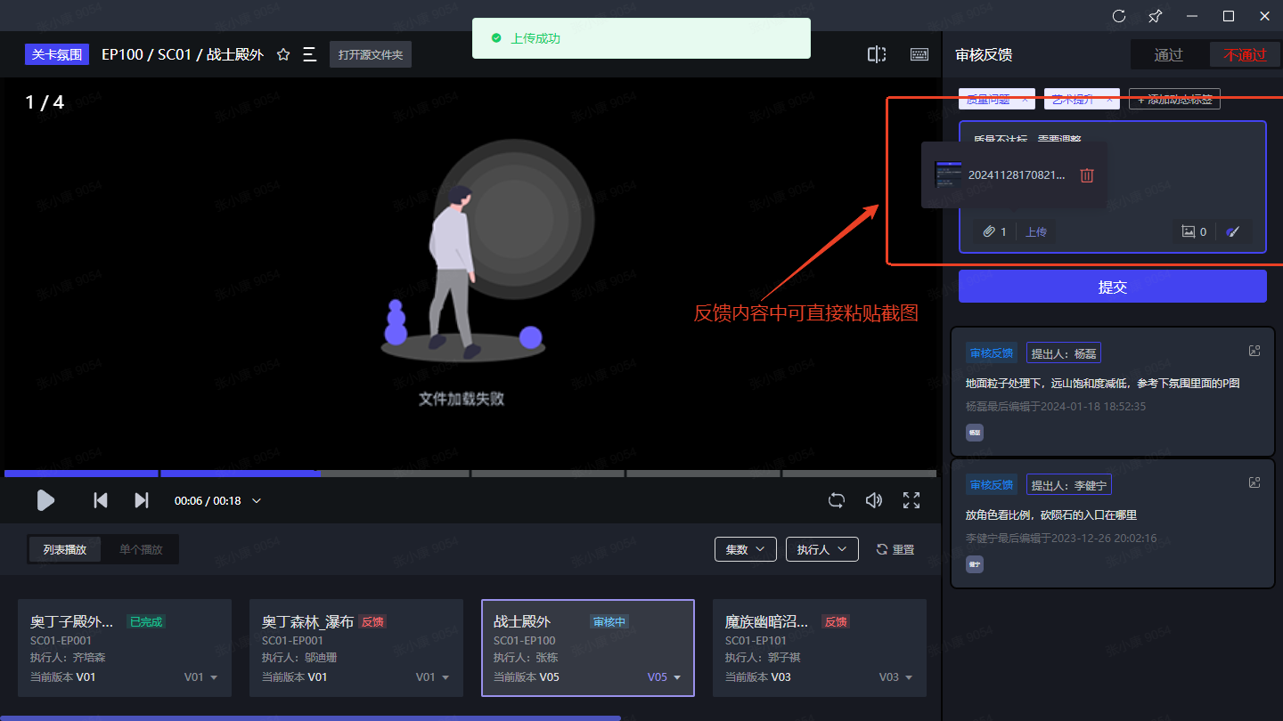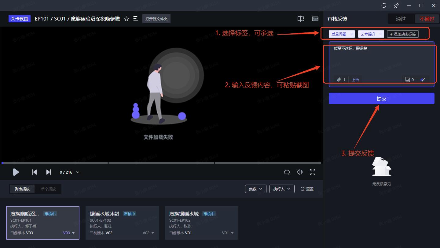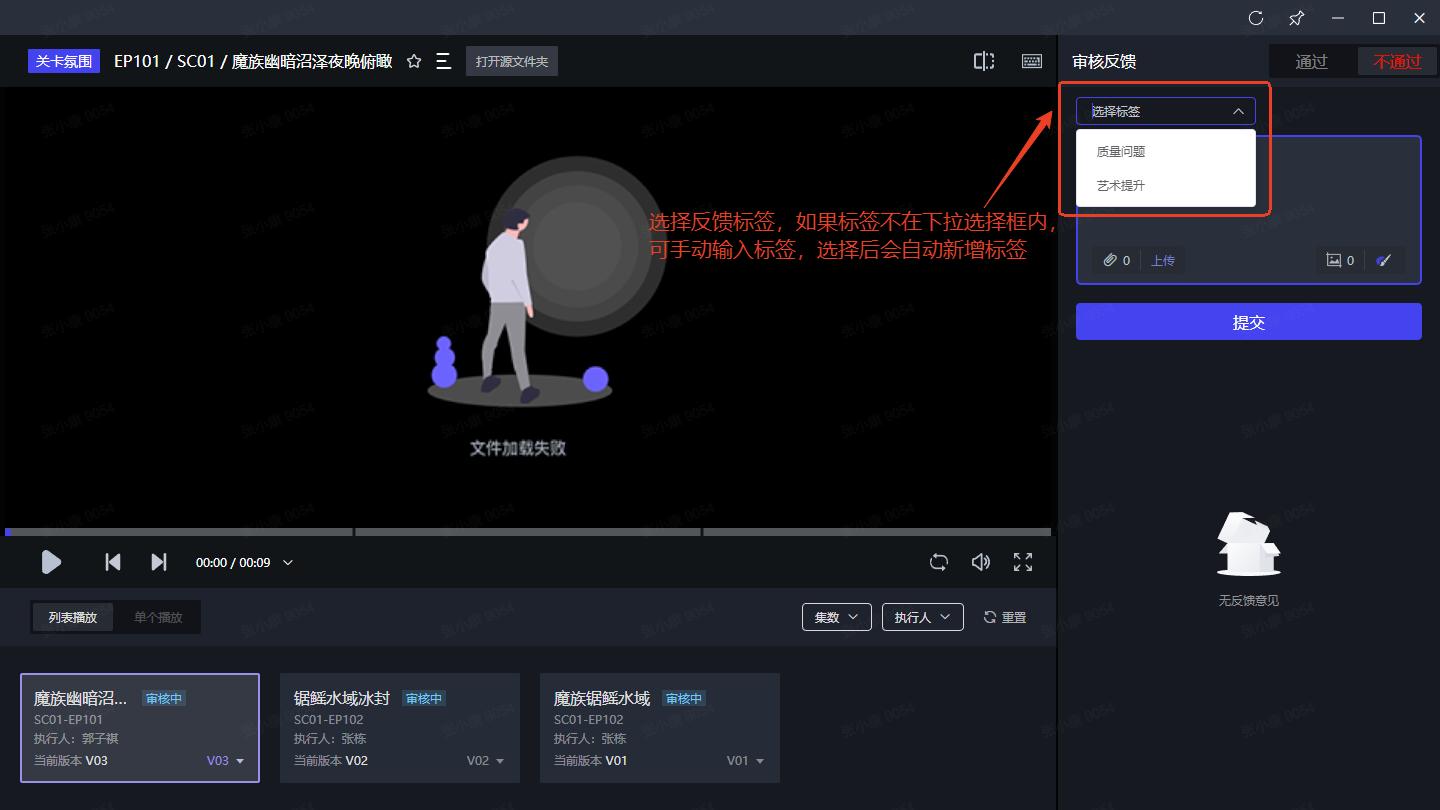 - 进入审片室 -> 反馈记录 -> 点击右上角图标