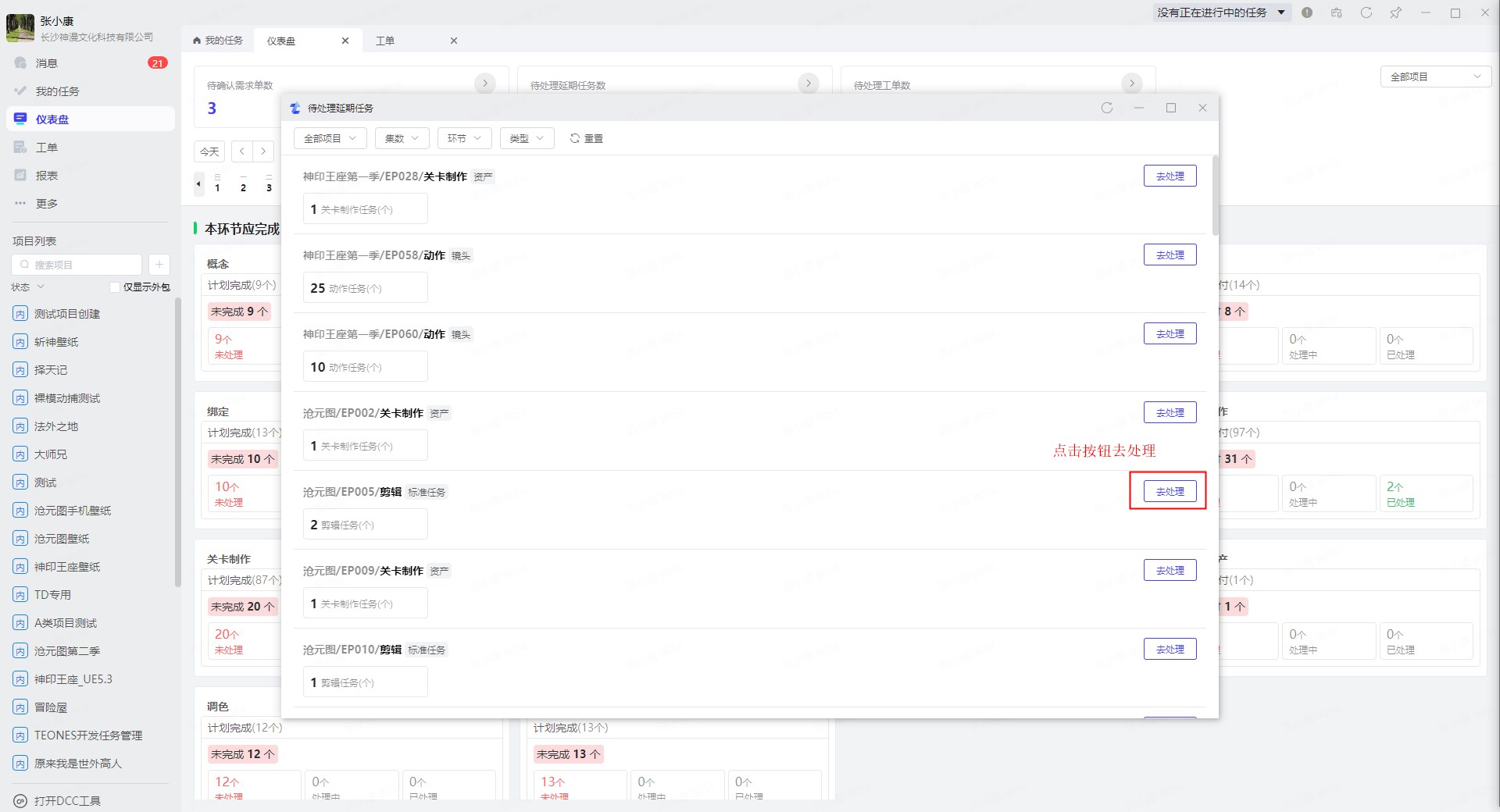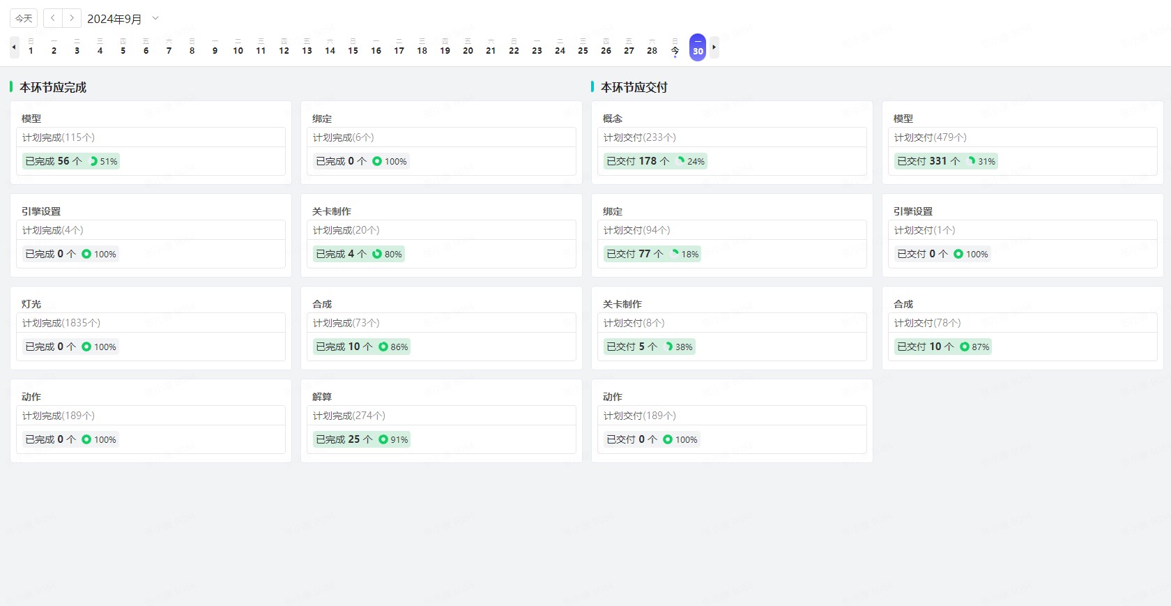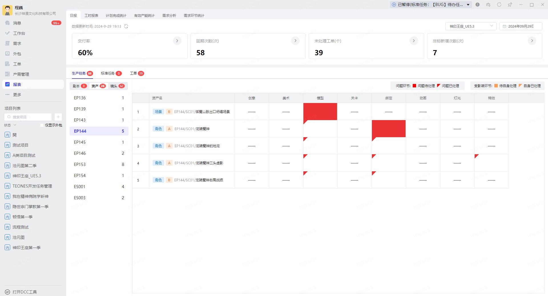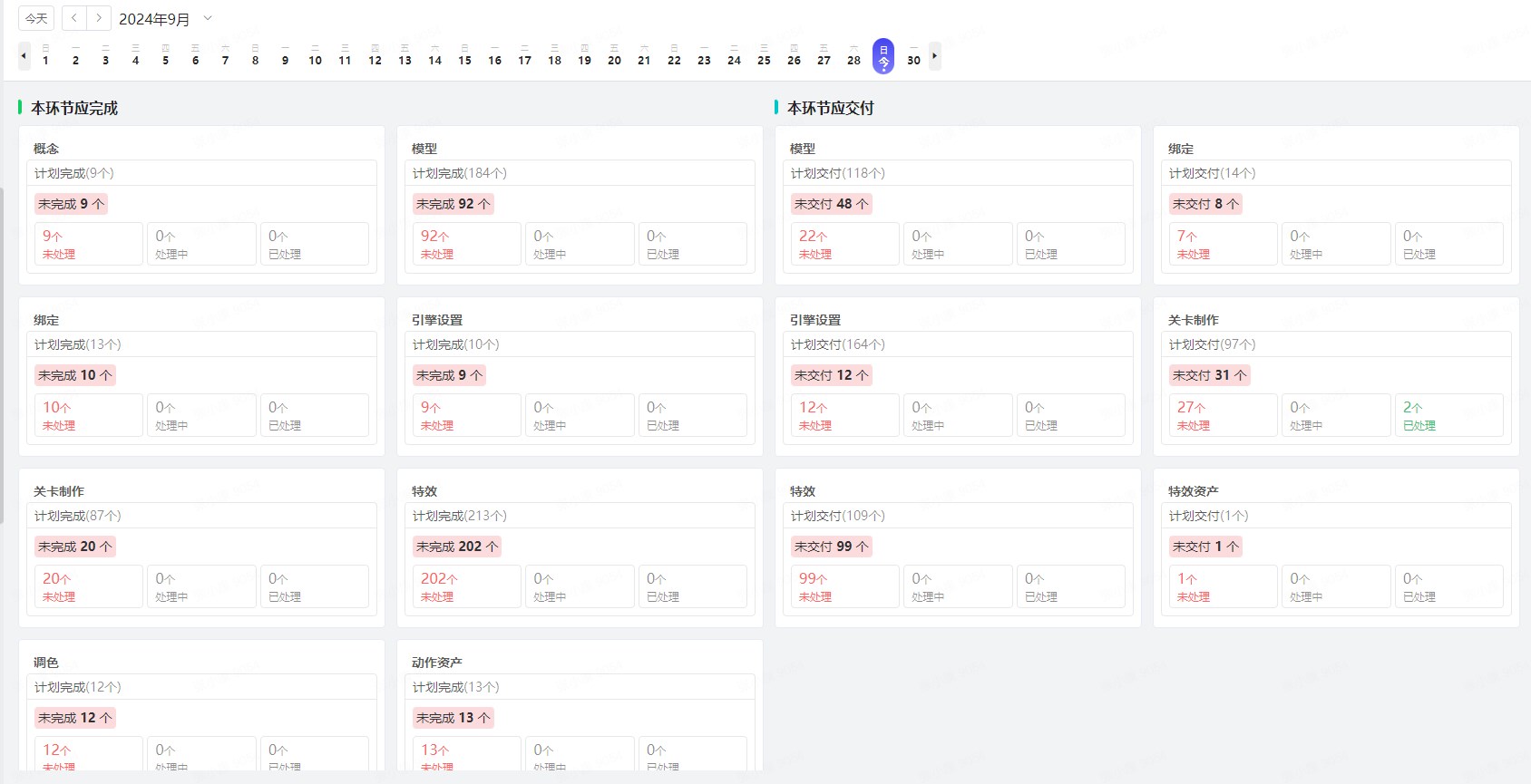 每天17:30 检测任务完成和交付情况,未完成和未交付的任务会爆红,需要各环节制片处理