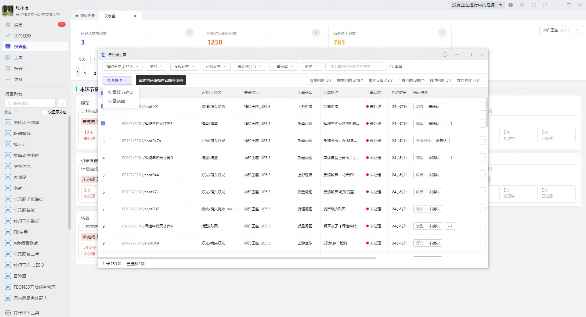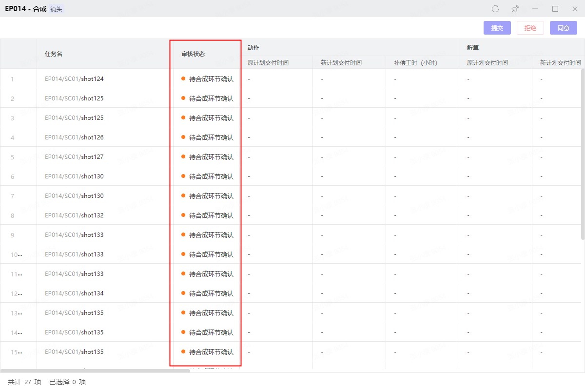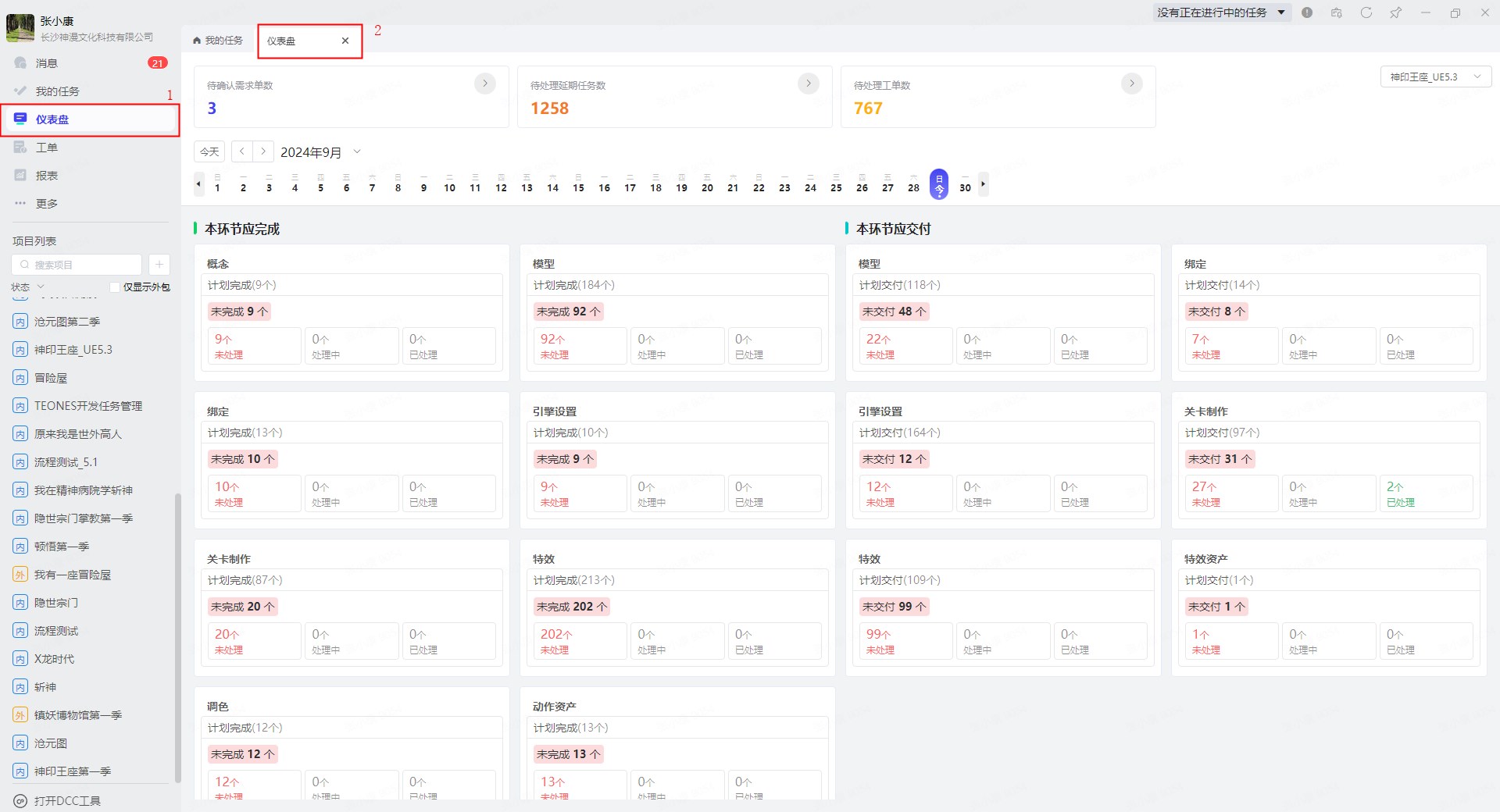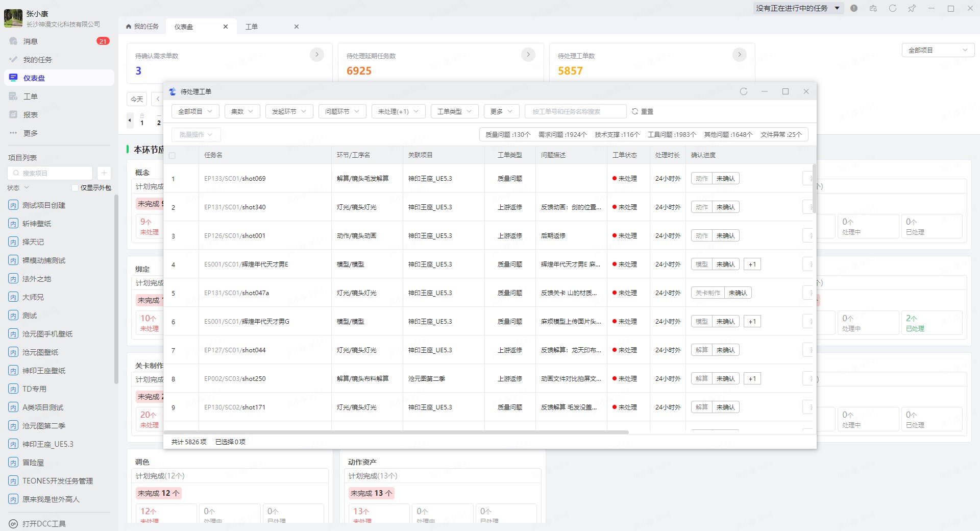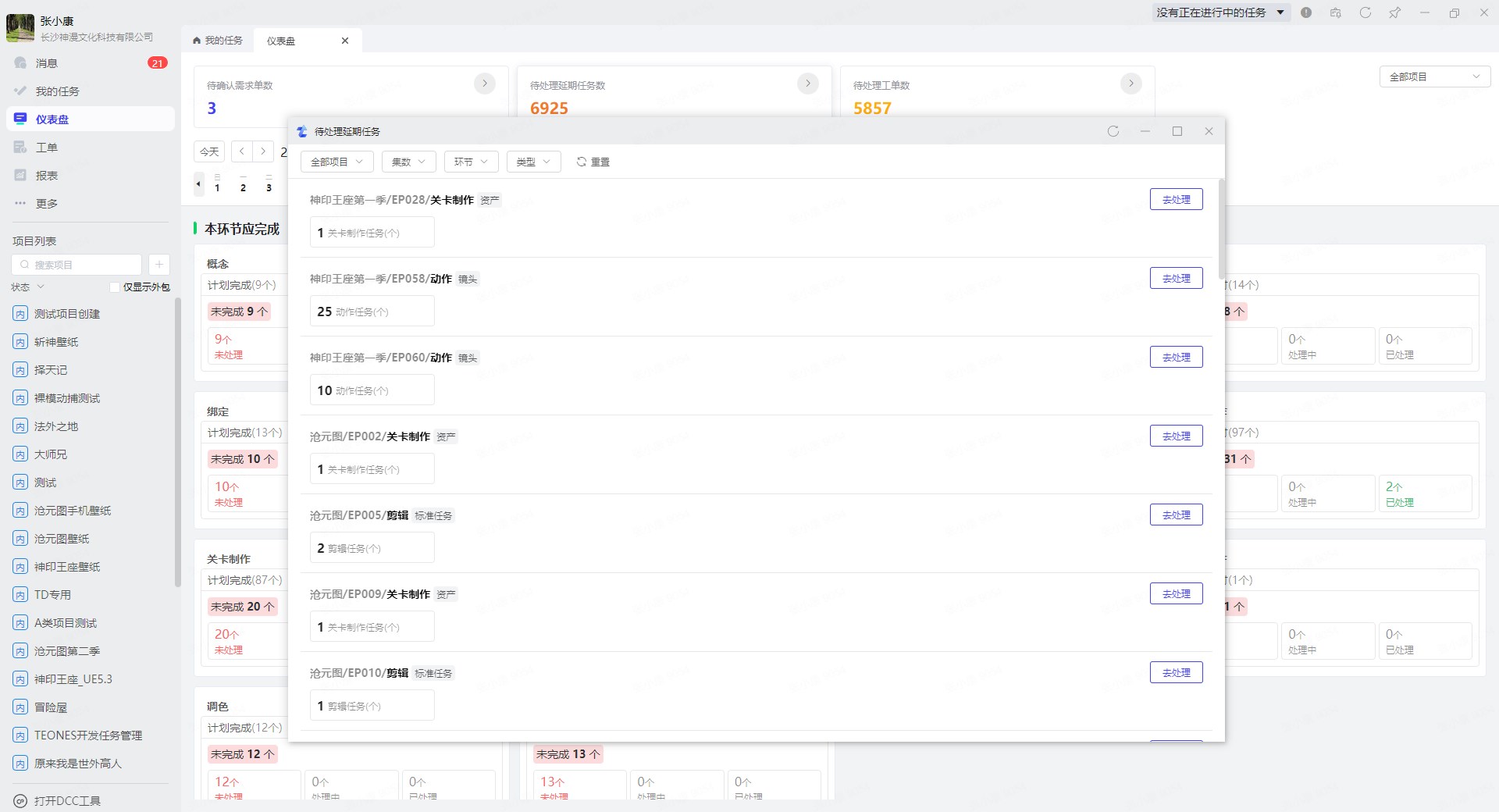 每天17:30 检测任务完成和交付情况,未完成和未交付的任务会爆红,需要各环节制片处理