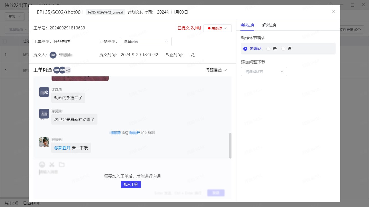 可以查看工单处理记录,实时跟踪任务问题处理进展