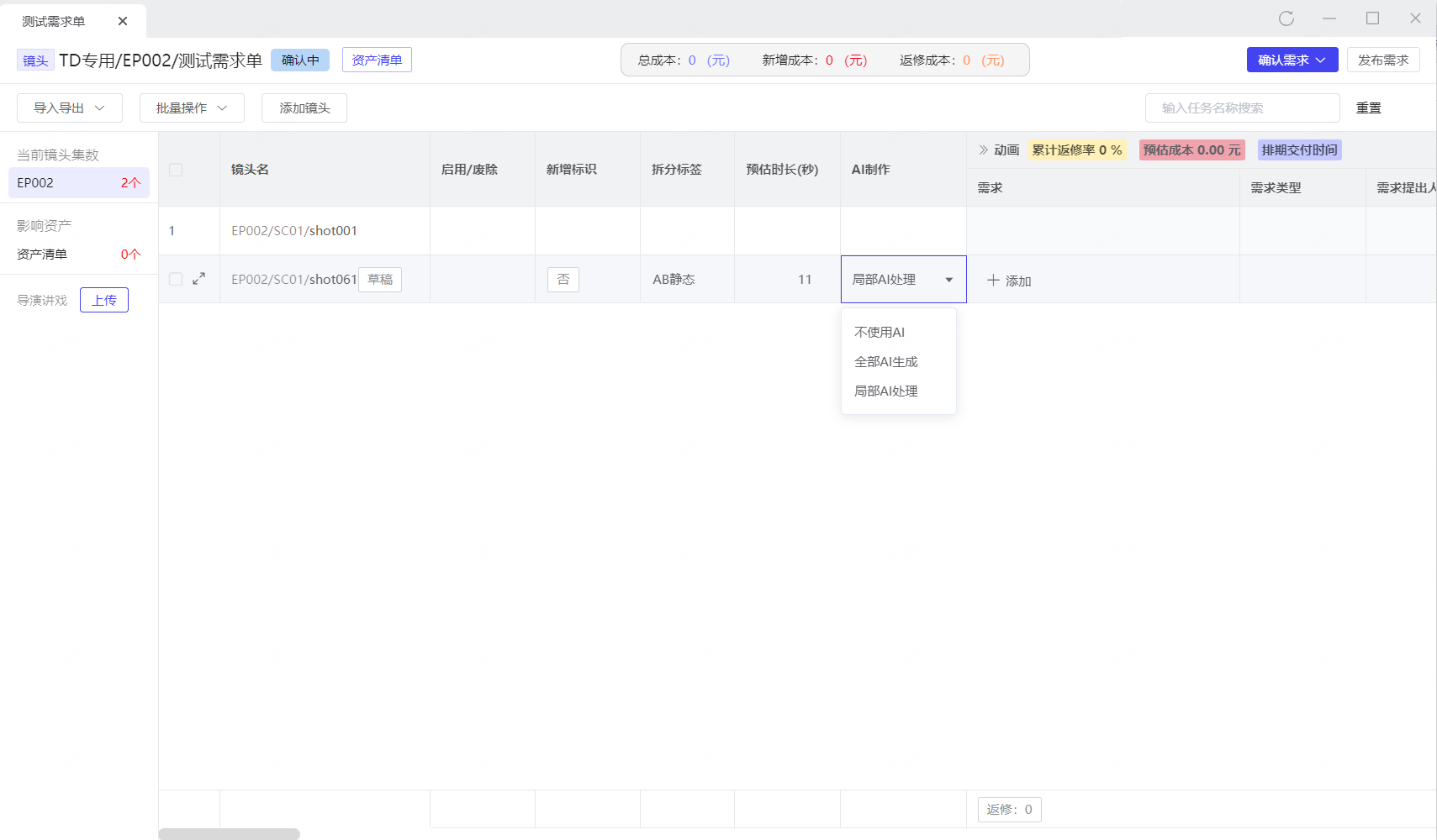 需求单修改 AI制作 方式