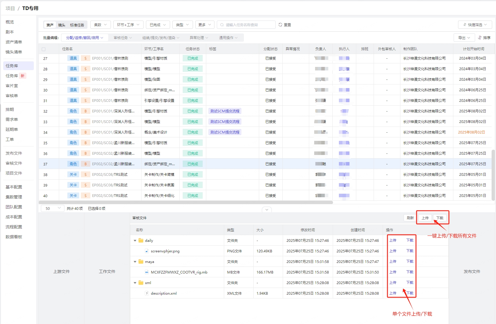 审核文件用于展示任务的审核文件,包括任务的审核文件上传、下载功能。