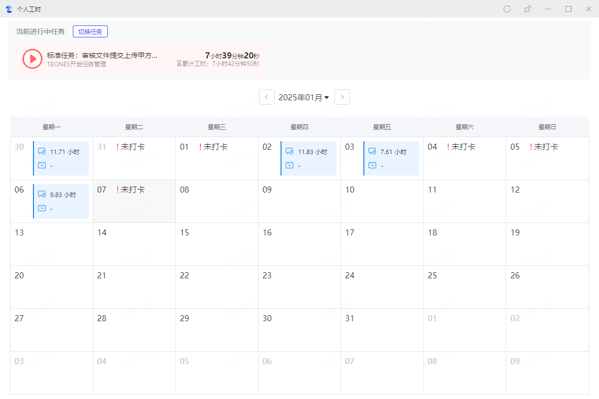 3.1、查看每日工作时长和任务工时,未打卡即没有获取到打卡记录
