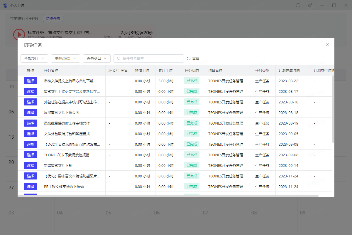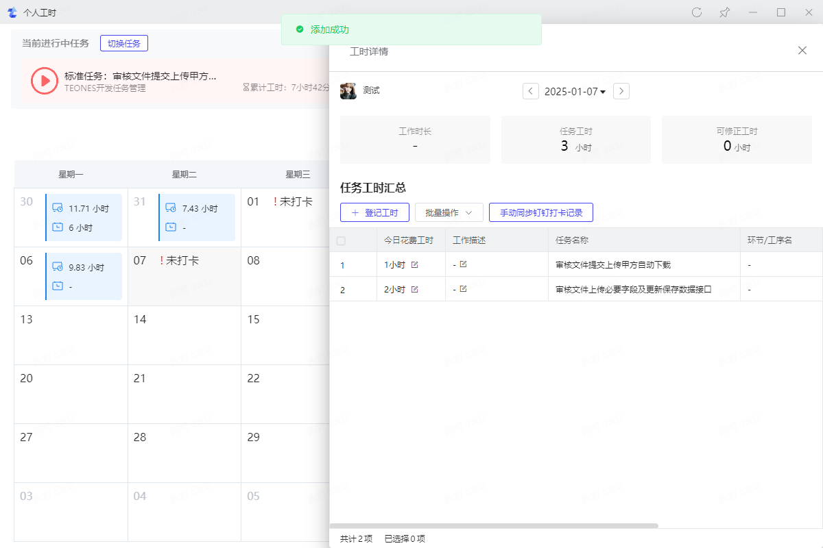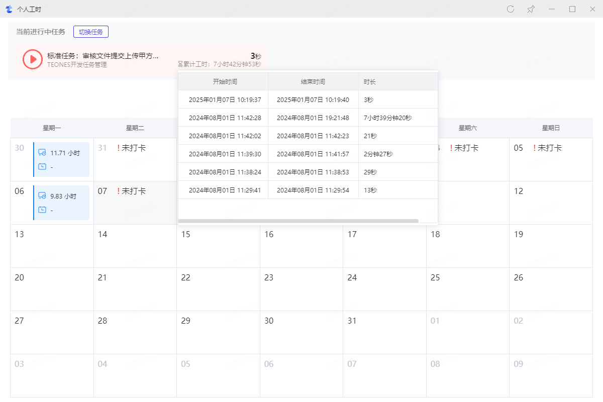 2.2、查看当前任务已开始时长和累计工时历史记录