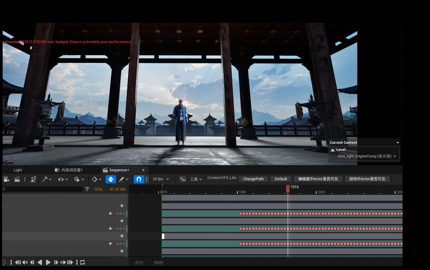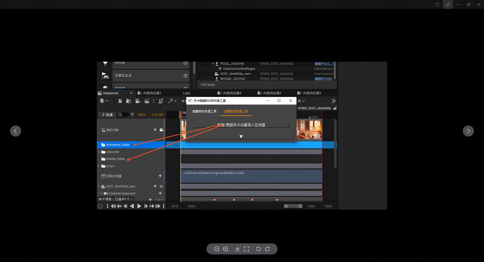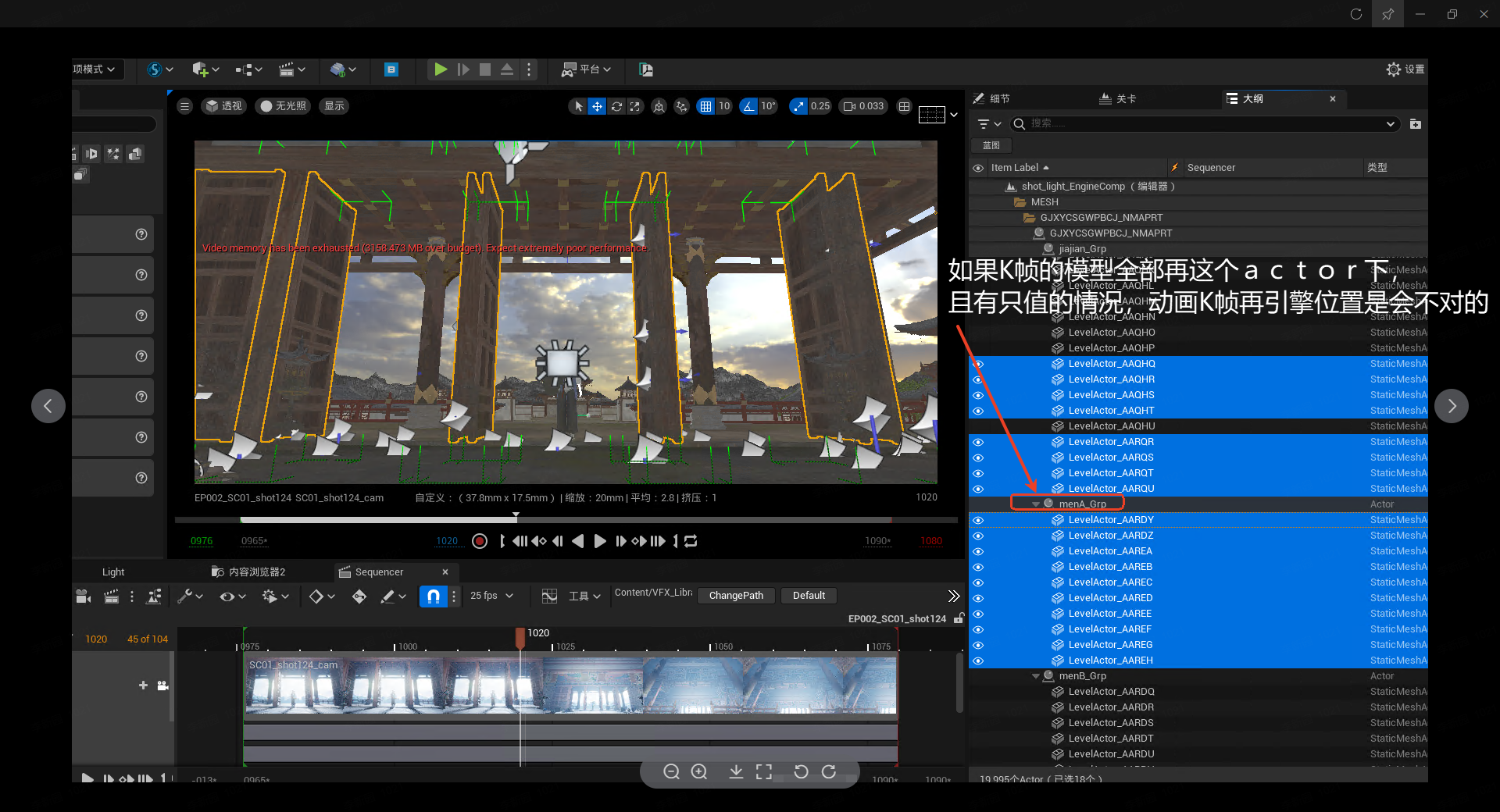该镜头动画使用了K帧工具,引擎内导入K帧信息,K帧的模型位置不对
