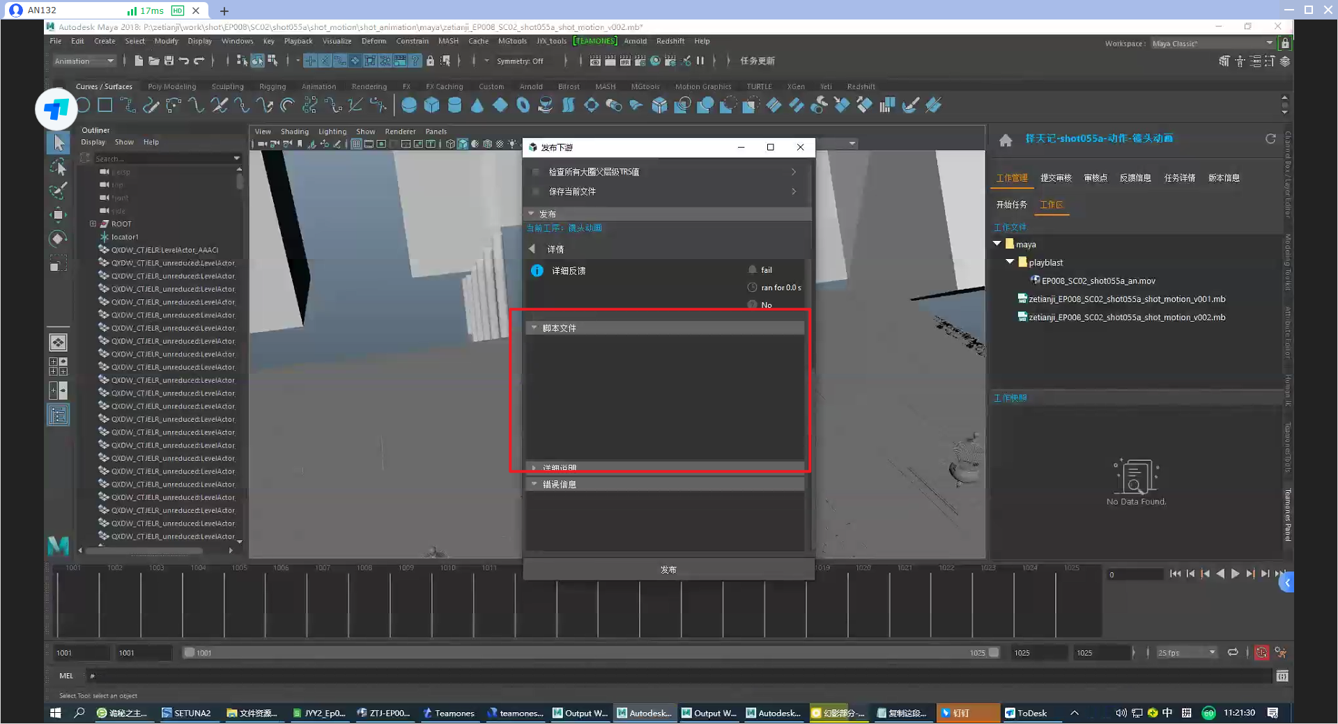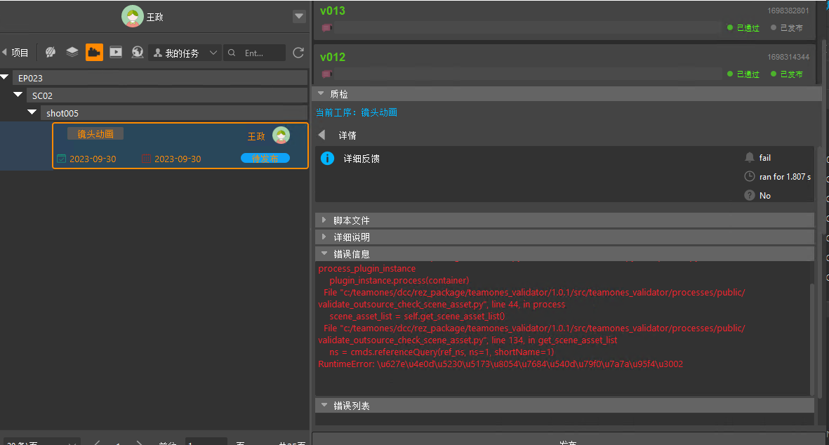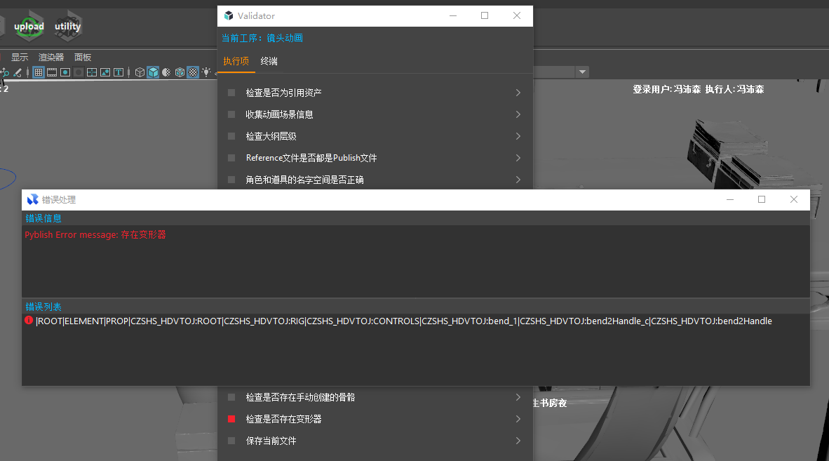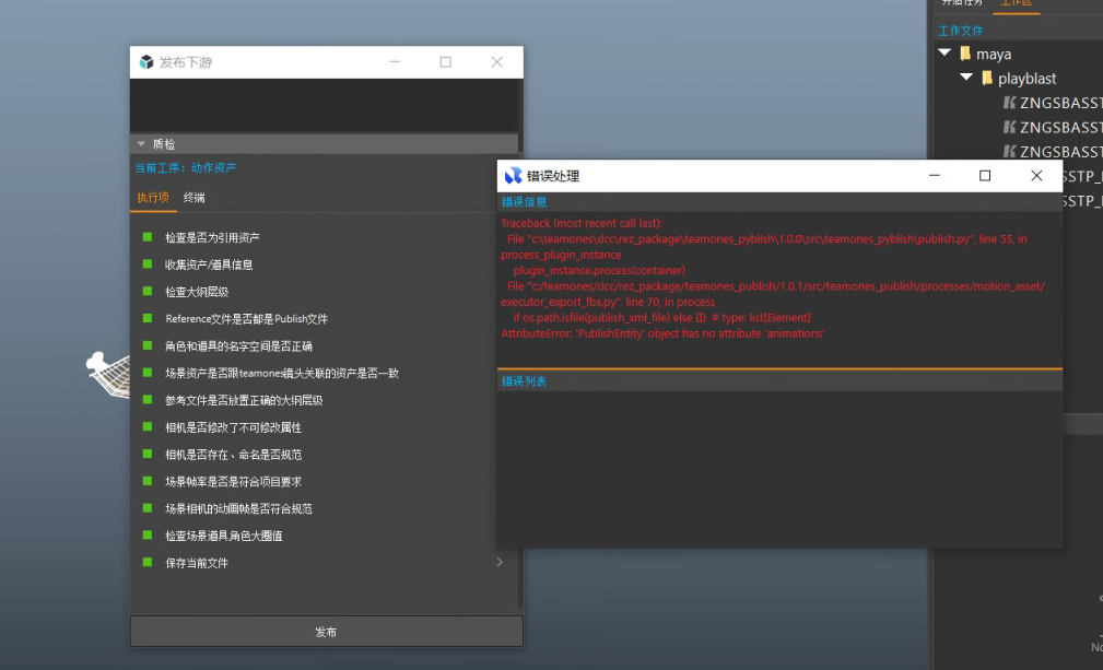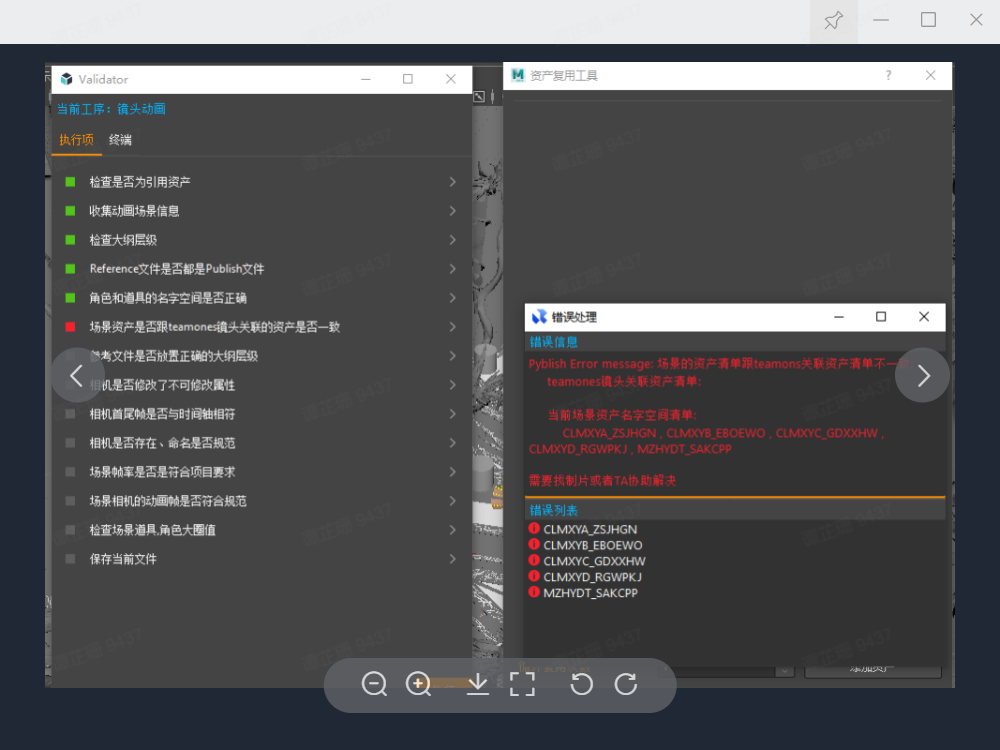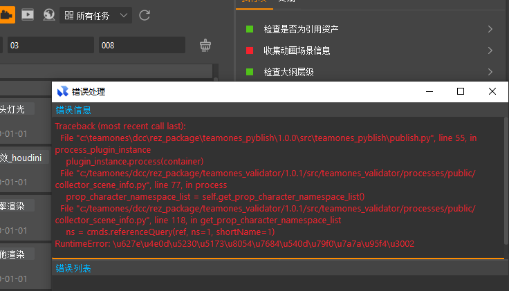 动画质检【角色和道具的名字控件是否正确】执行项和【收集动画场景信息】执行项爆红