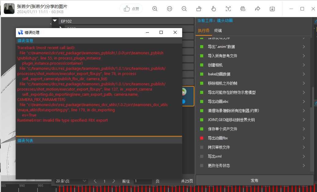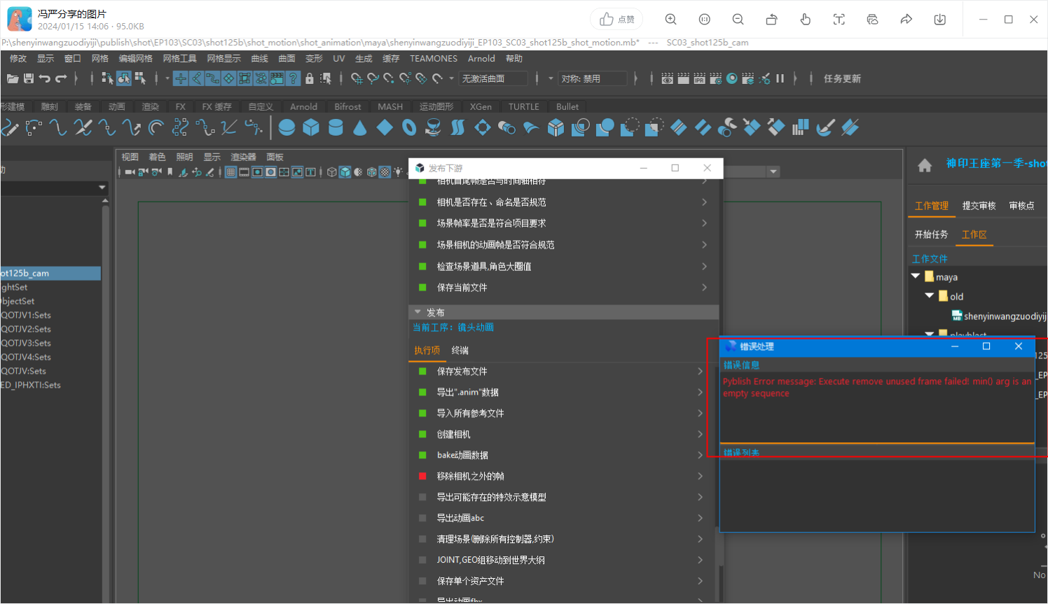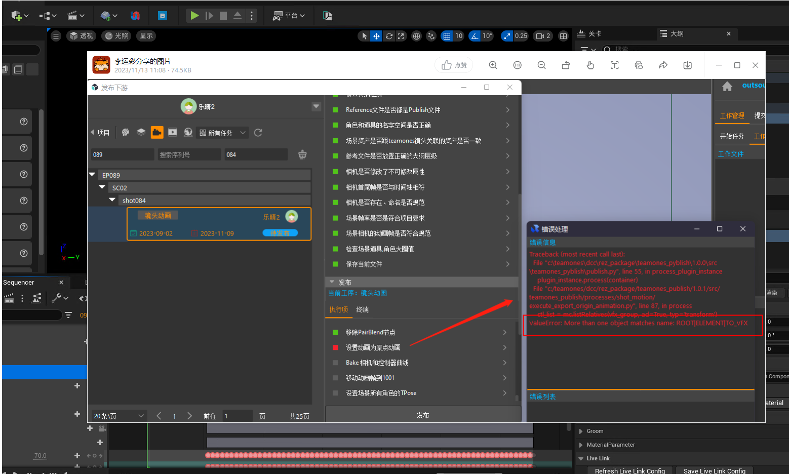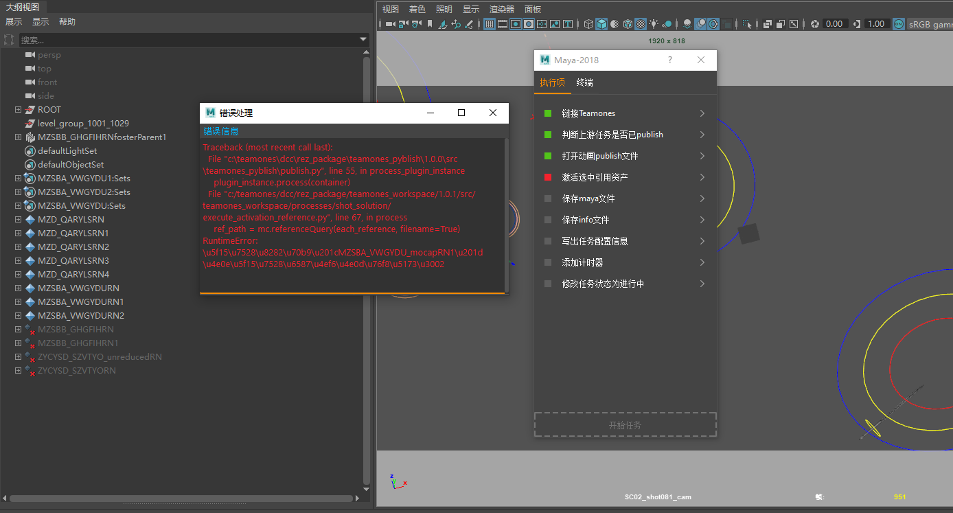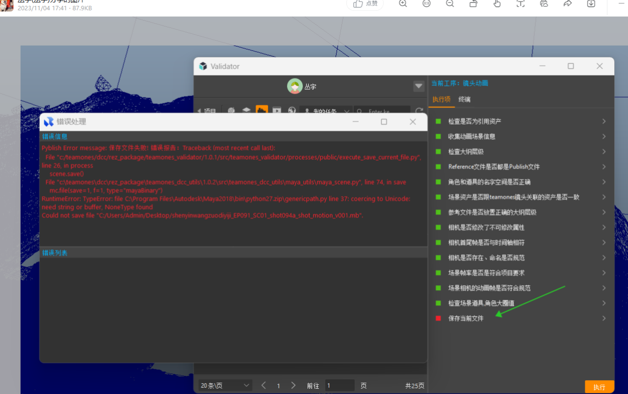 动画质检【角色和道具的名字控件是否正确】执行项和【收集动画场景信息】执行项爆红