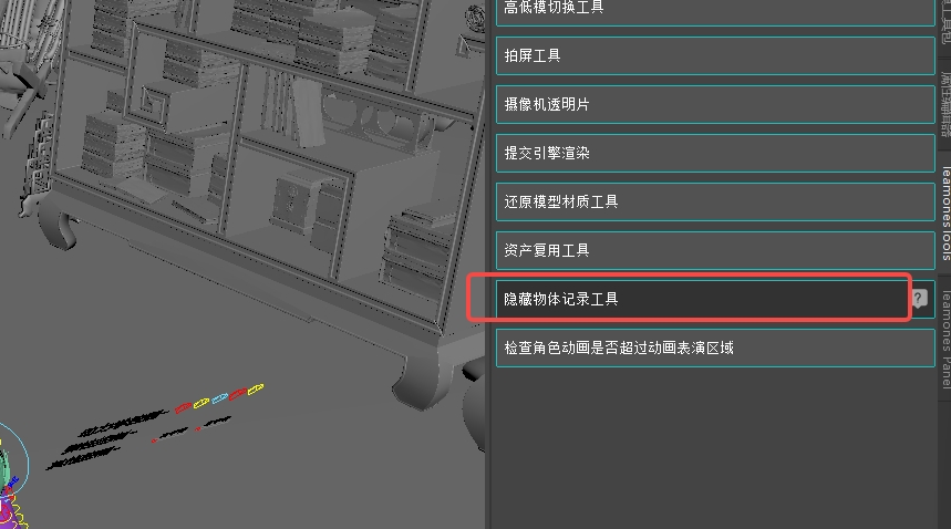单个道具有多个mesh/部件存在,动画只使用了其中一部分,未使用部分还存在镜头范围内,未移出镜头外